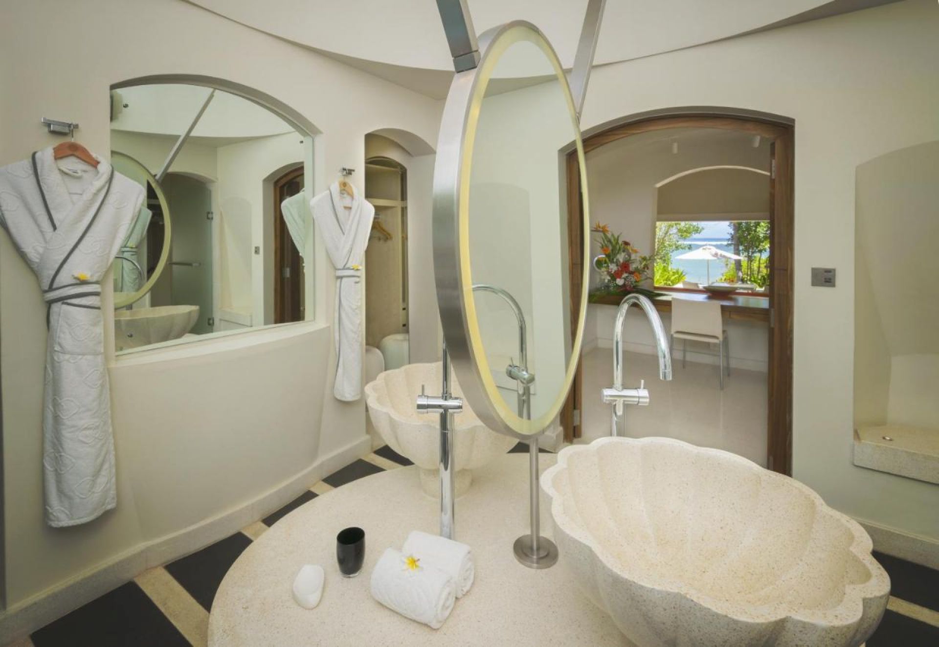 Стаите, суитите и вилите включват външни вани или басейн. Разполагат също със самостоятелна градина и вътрешен двор, които се отварят към разкошна растителност. Някои стаи предлагат изглед към Индийския океан. На разположение на гостите, настанени в суит или вила, са денонощните услуги на иконом.