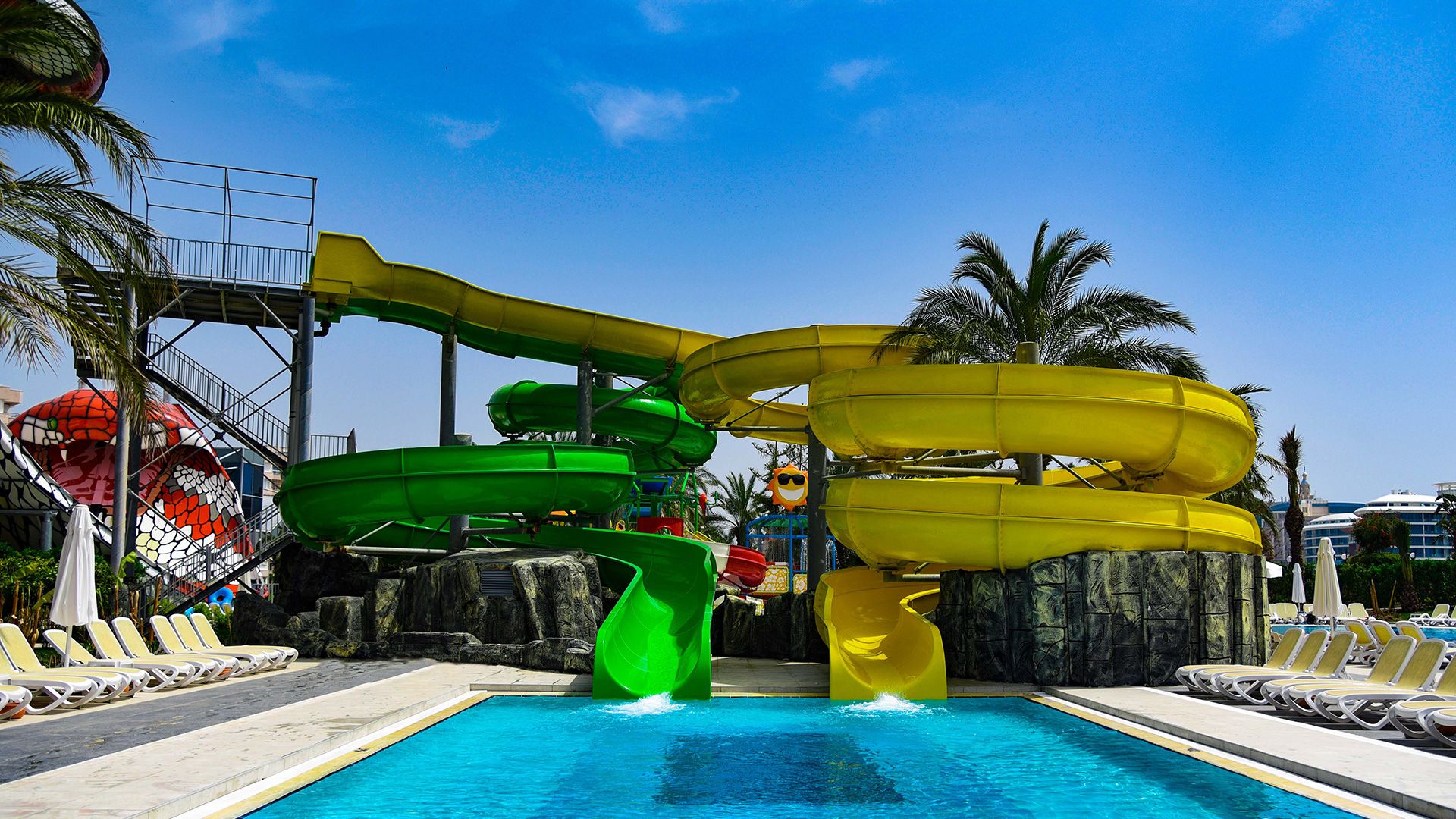 За децата: Детско меню, детска зона за игра, мини клуб (4-12 г.), 3 детски басейна, водни пързалки, мини дискотека, анимация.