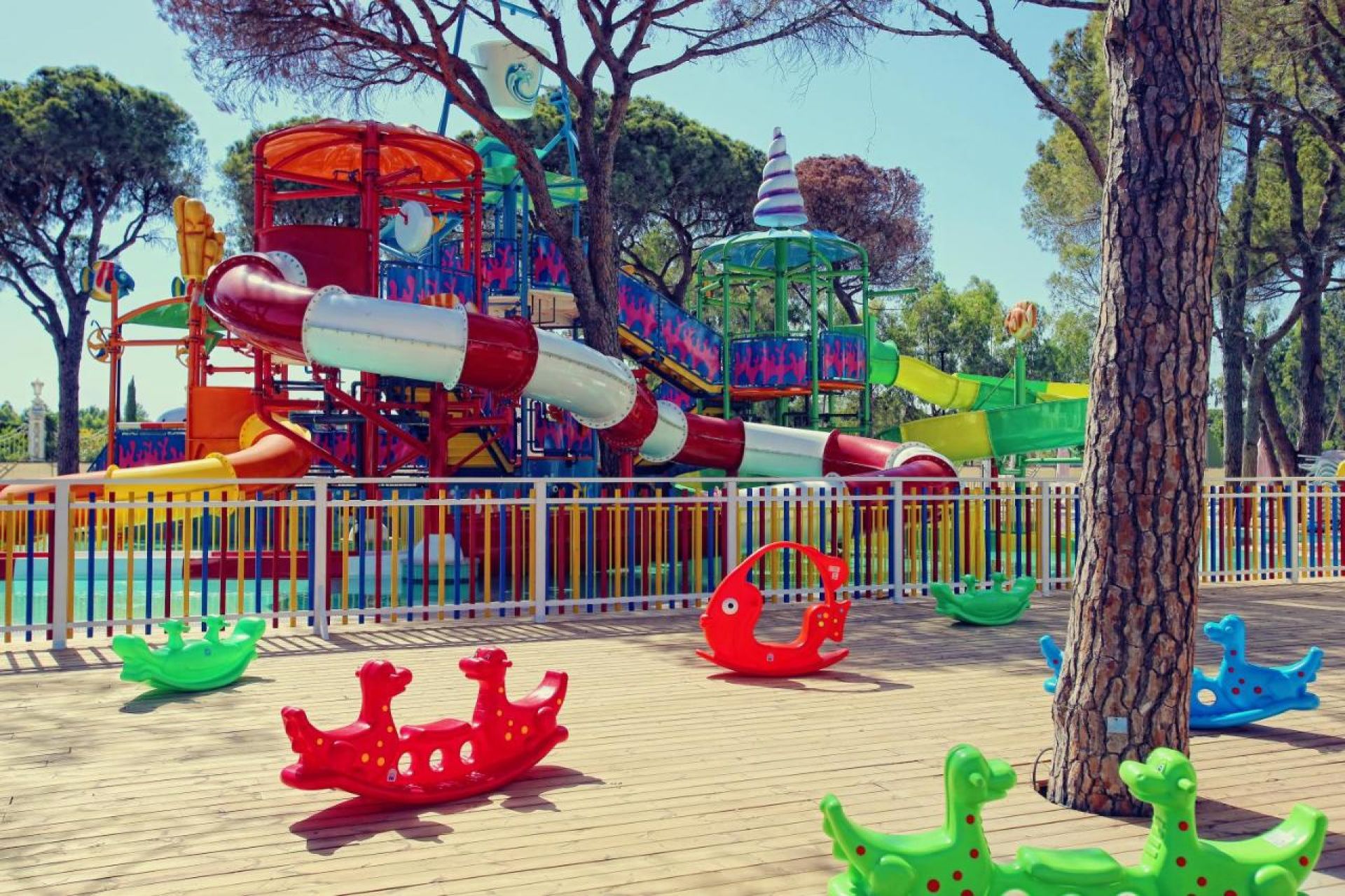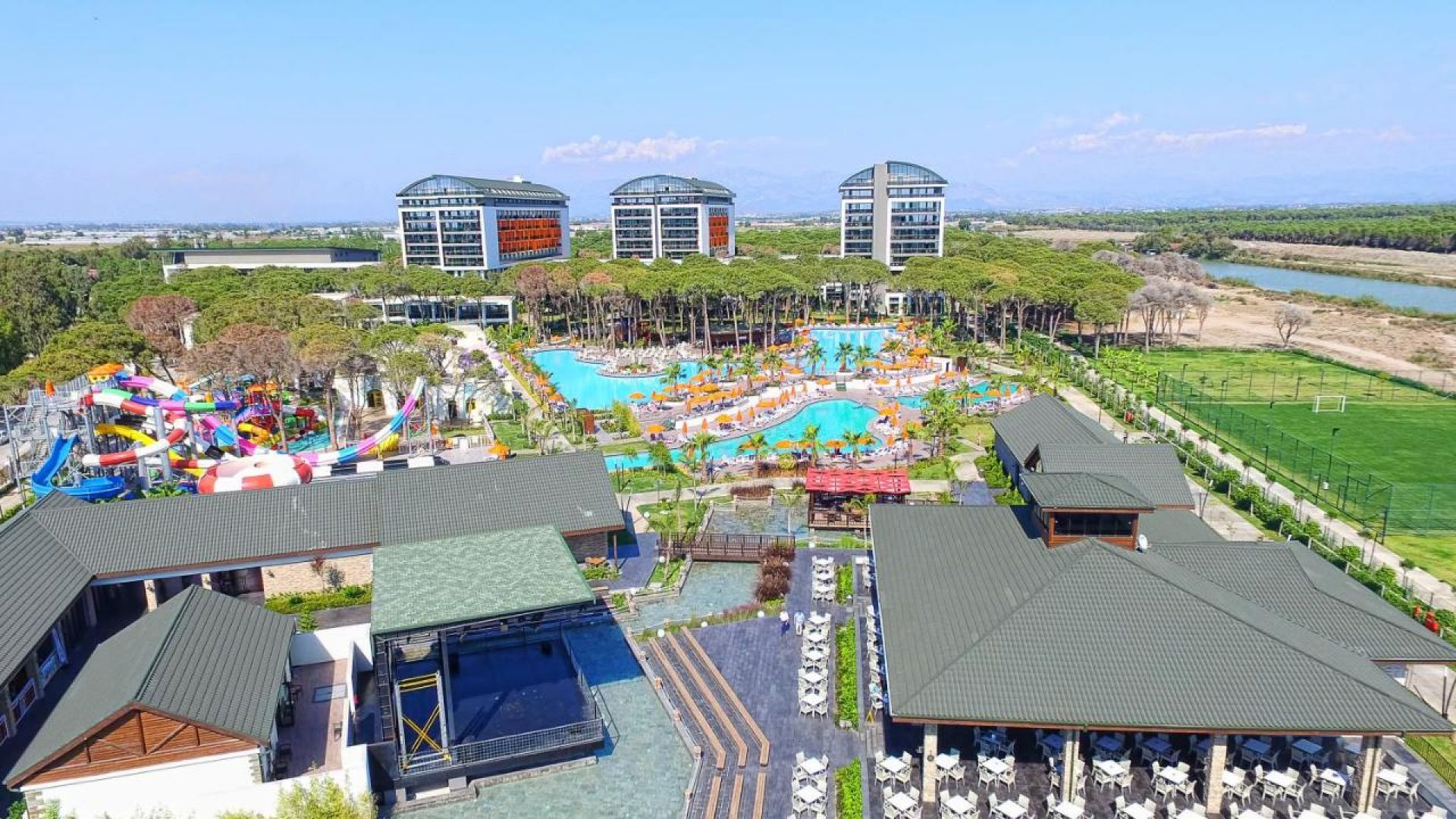 Основен ресторант, 5 a лa карт ресторанта (с предварителна резервация), 9 бара, 5 открити и 1 закрит басейн, 4 водни пързалки, аквапарк, мини клуб(4 - 12г.) магазини, Спа център, дискотека, TВ зала, 9 конферентни зали, билярд, боулинг, тенис корт, фитнес цетър, дартс, тенис на маса, плажен волейбол, паркинг.