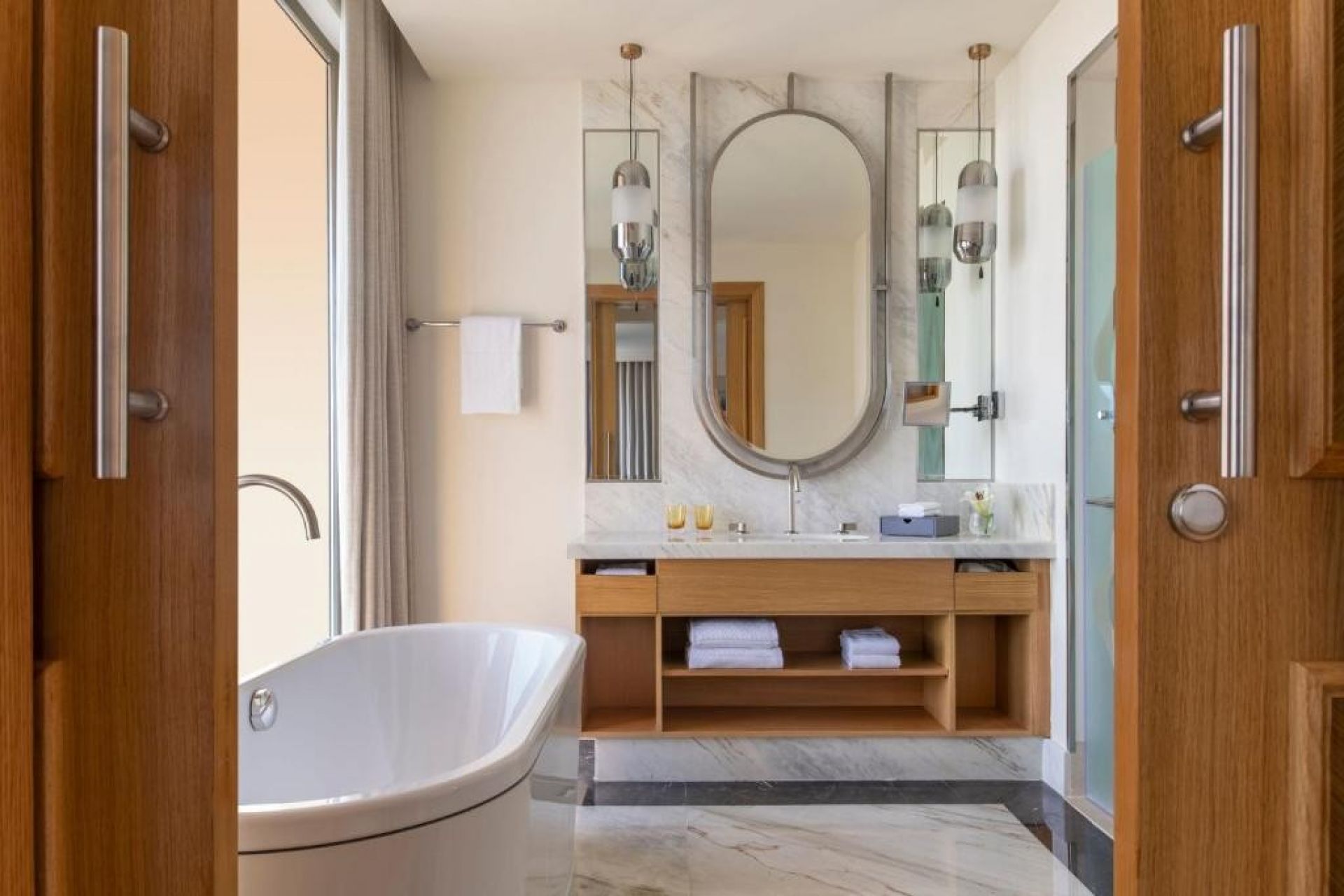 Луксозен хотел на брега на морето в дипломатическия квартал. Гостите могат да се насладят на елегантни стаи с невероятна гледка към Персийския залив, спа център, ресторанти от световна класа за всеки вкус и изискани пространства за събития. Подходящ за взискателни гости.