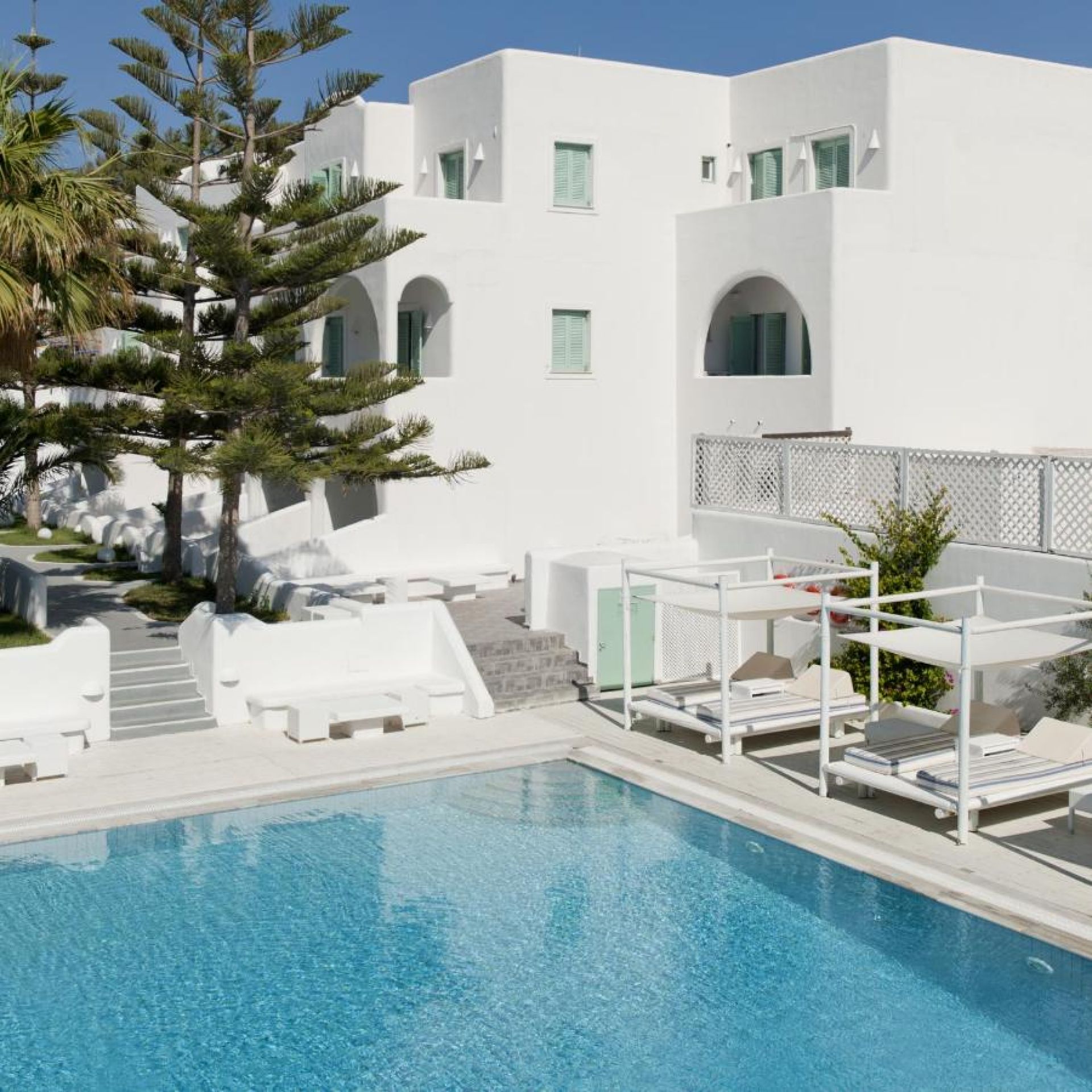 Хотелът се намира на 9 километра от летището, на 12 км от пристанище Athinios, на 15 км от живописното селище Oia, на 9 км от най-известният и добре организиран черен бряг на Камарата, в центъра на туристическото селище Фира. Местоположението на хотела е идеално за опознаването на Санторини и неговата уникална красота. Голяма част от бляскавите ресторанти, барове, магазини на централния площад в Фира се намират в непосредствена близост до хотела.