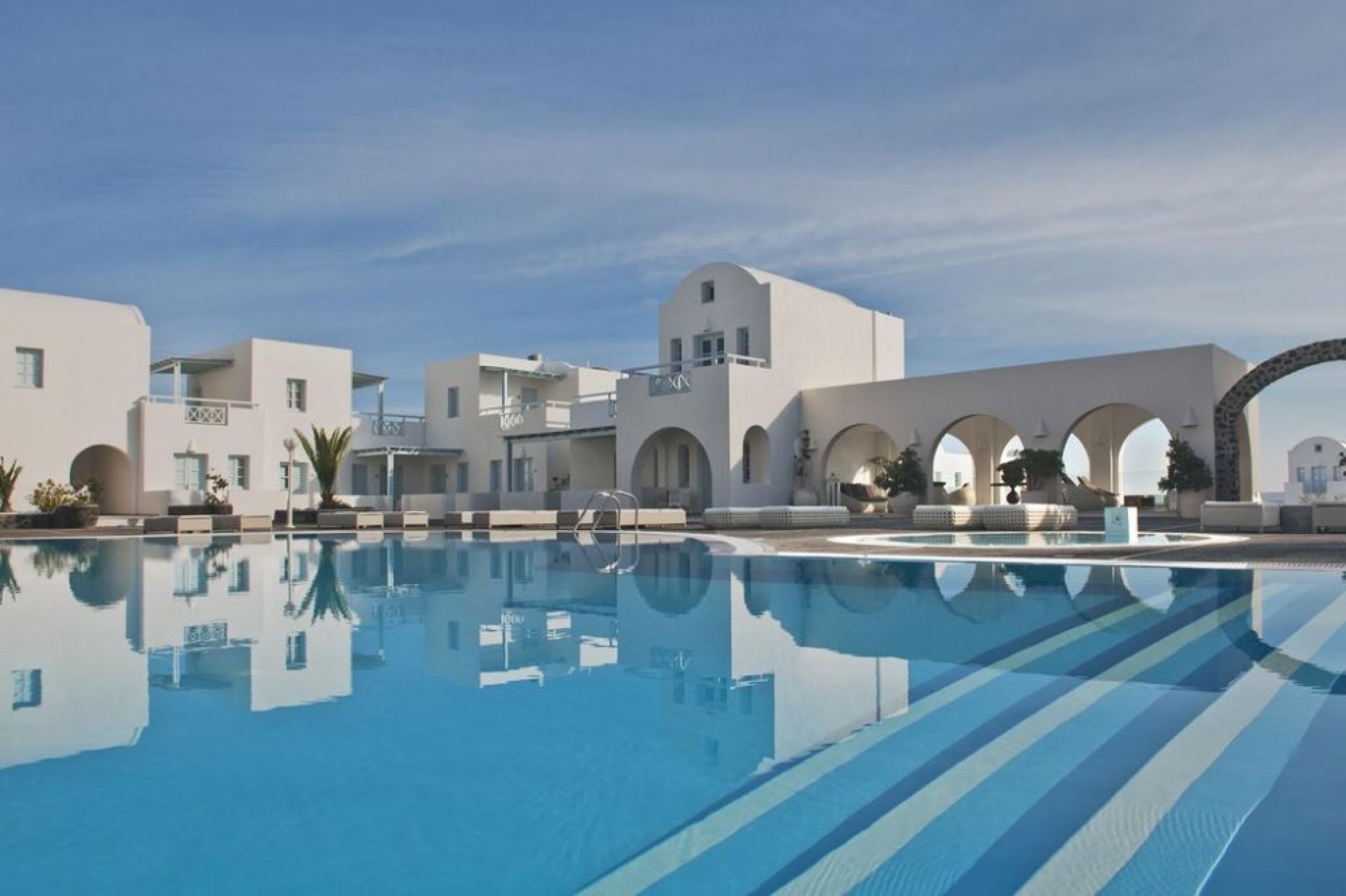 Хотелът се намира на 500 м. от центъра на столицата Фира, на 12 км. от Камари, на 14 км. от Периса, на 7 км. от брега на морето. Луксозен хотел, построен в изцяло традиционен цикладски стил. Комплекс El Greco Resort, прилича на малко селище с бели къщи. Разположен е на голяма територия и е идеален избор за луксозна семейна почивка. Автобусна спирка на 450 м. от хотела.