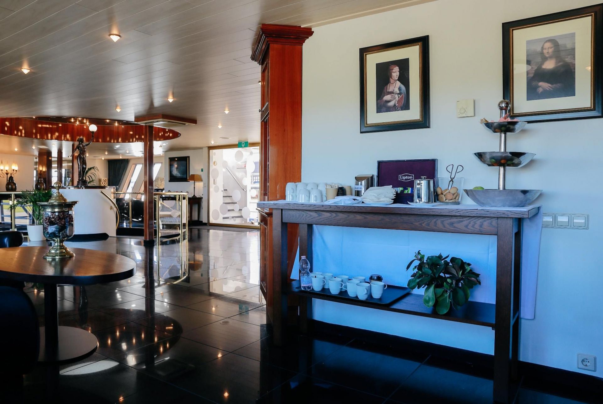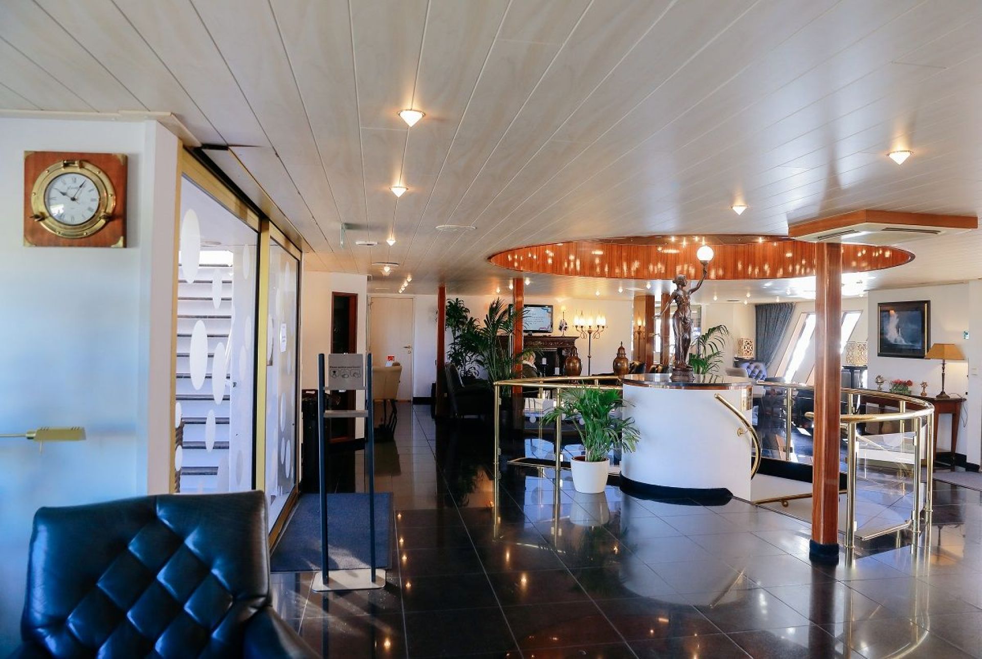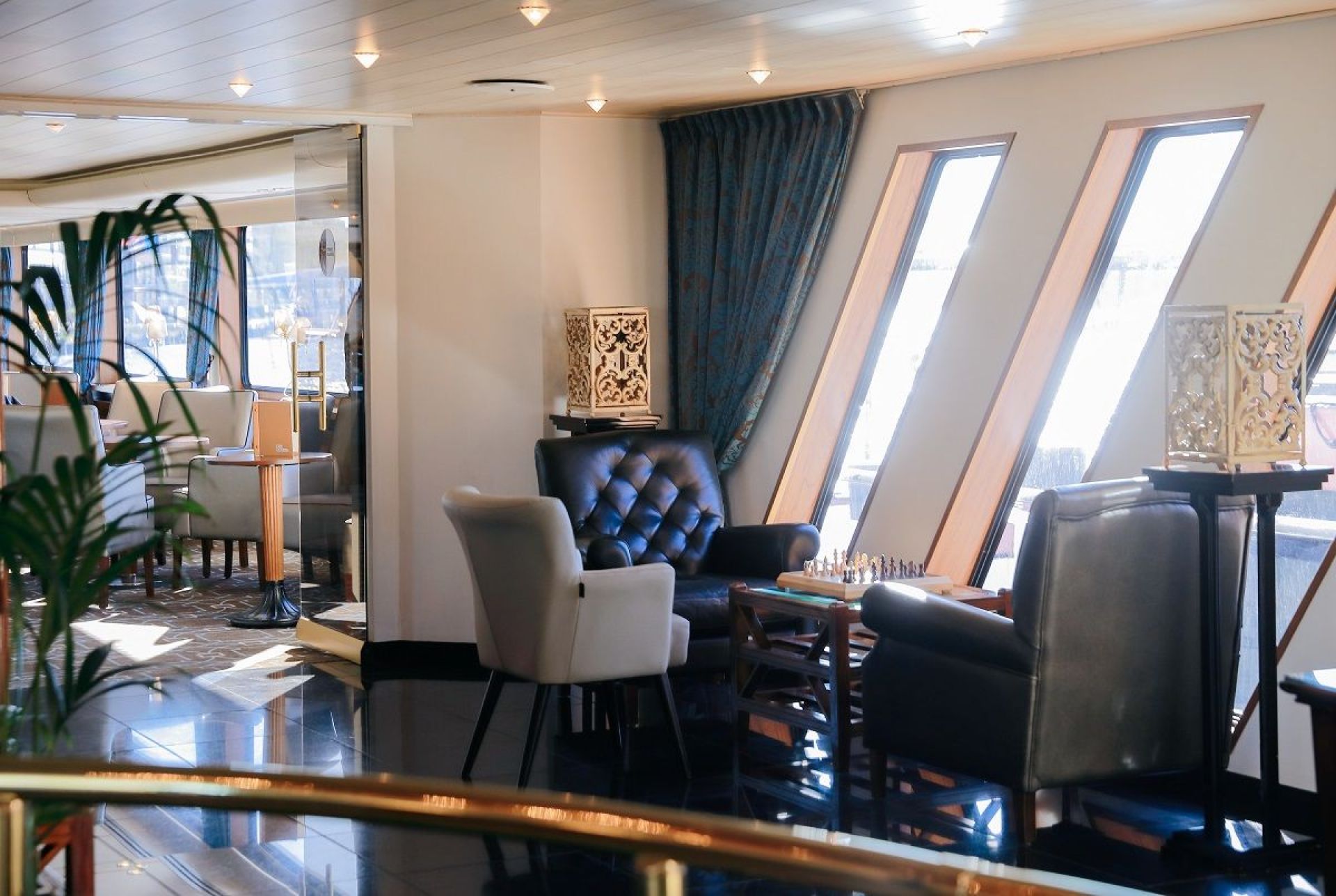 Корабът разполага с 3 палуби, капацитетът е 110 гости.