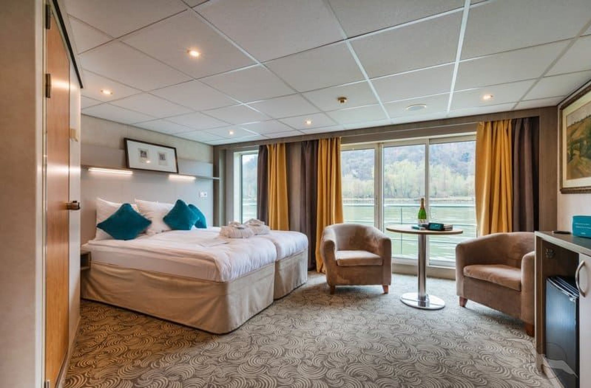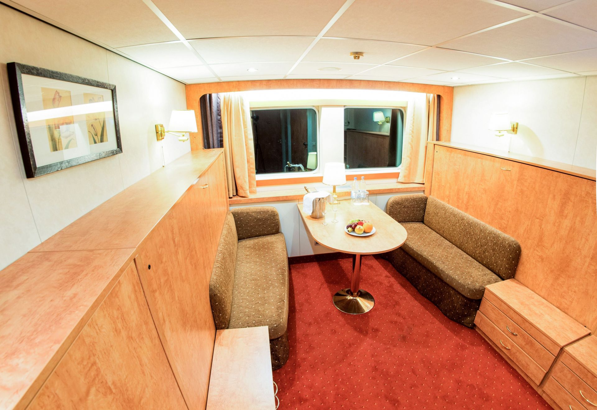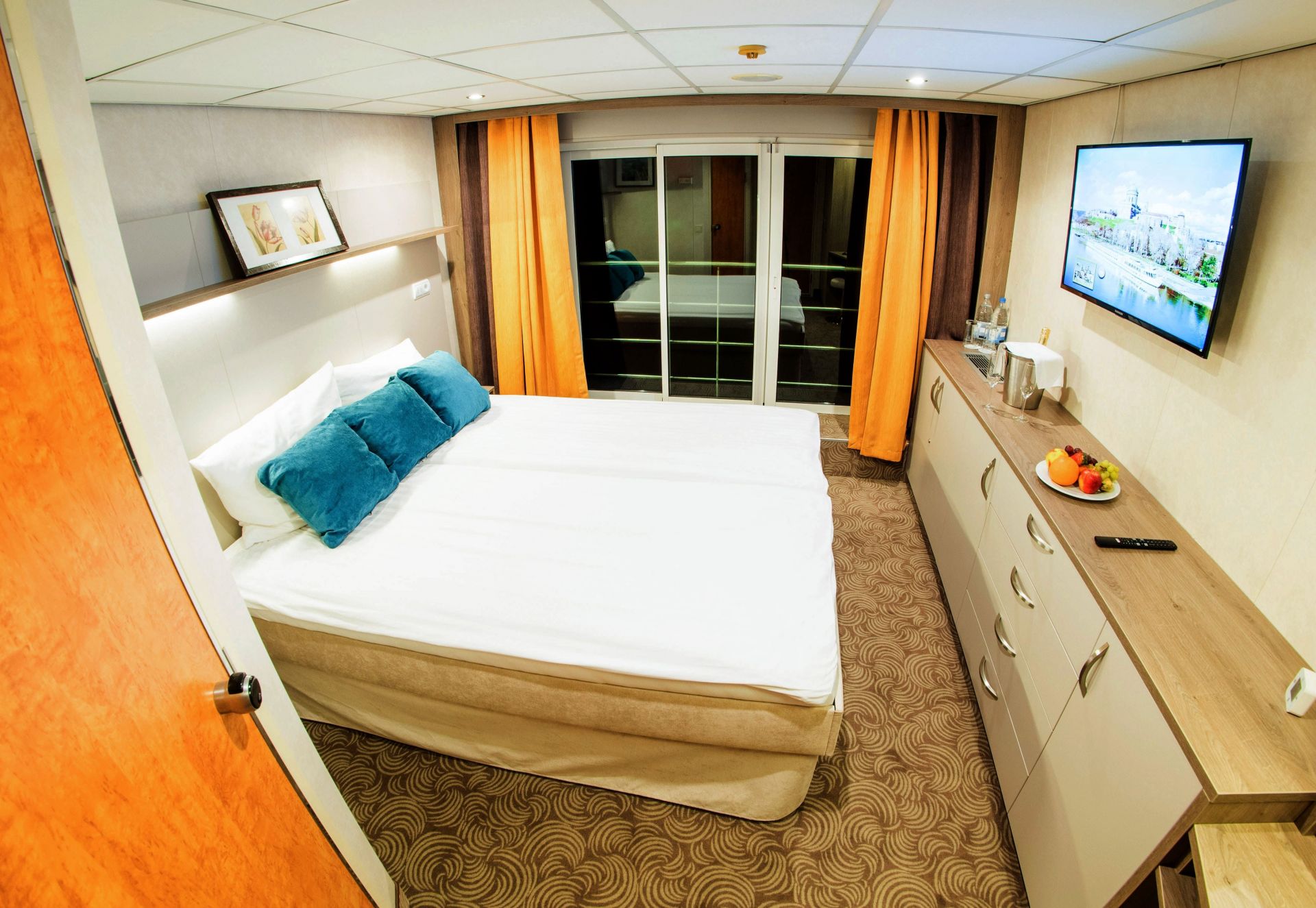 Каютите на средна и горна палуба са с площ от 14 м2 и големи френски отварящи се прозорци.
