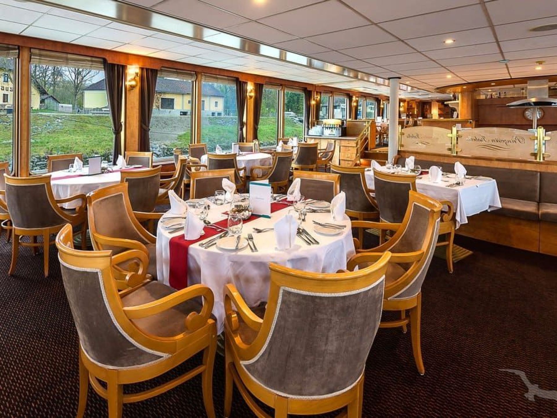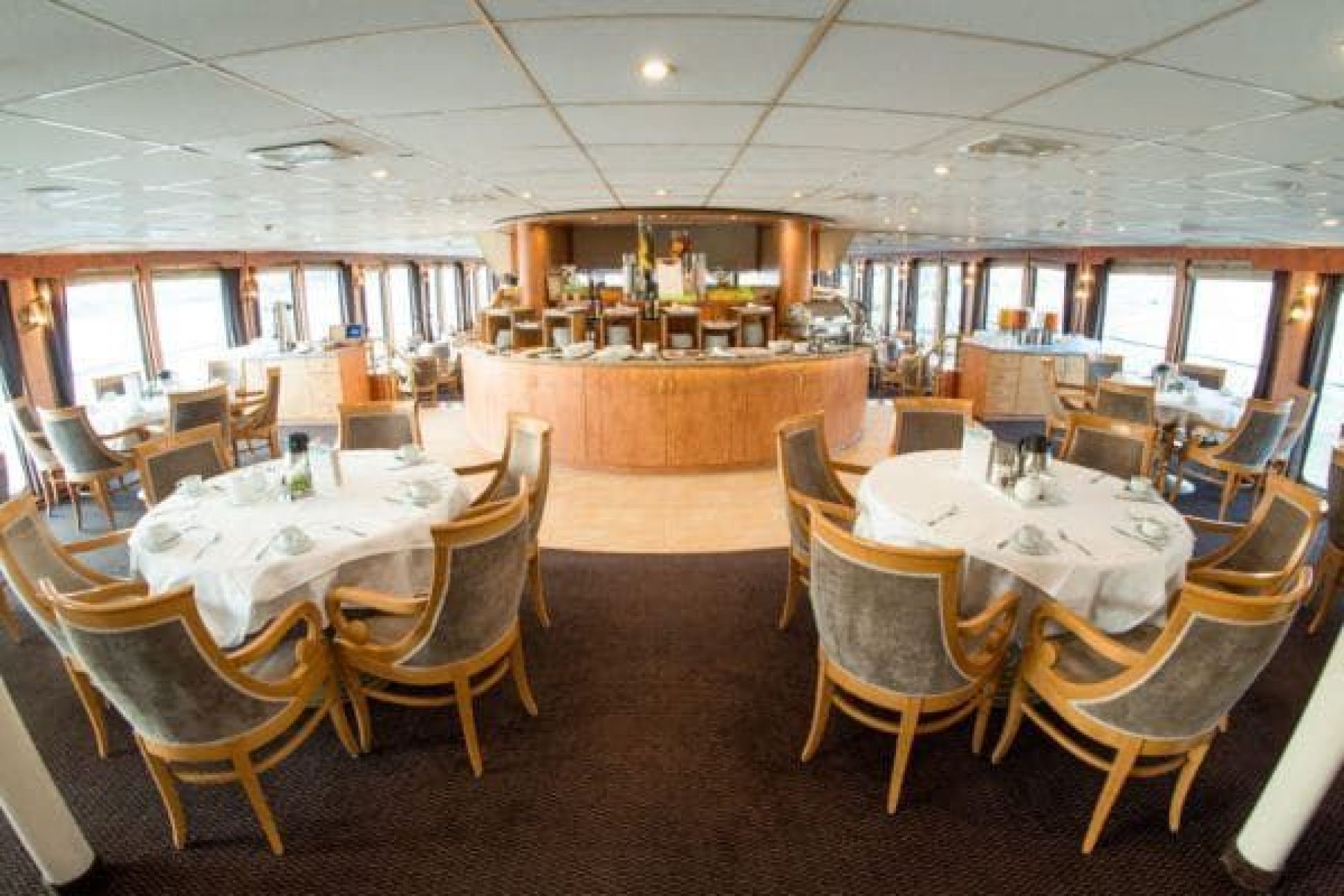 На борда ще намерите панорамен салон с бар, бар на кърмата, ресторант на основна палуба, голяма слънчева палуба с места за сядане, асансьор.