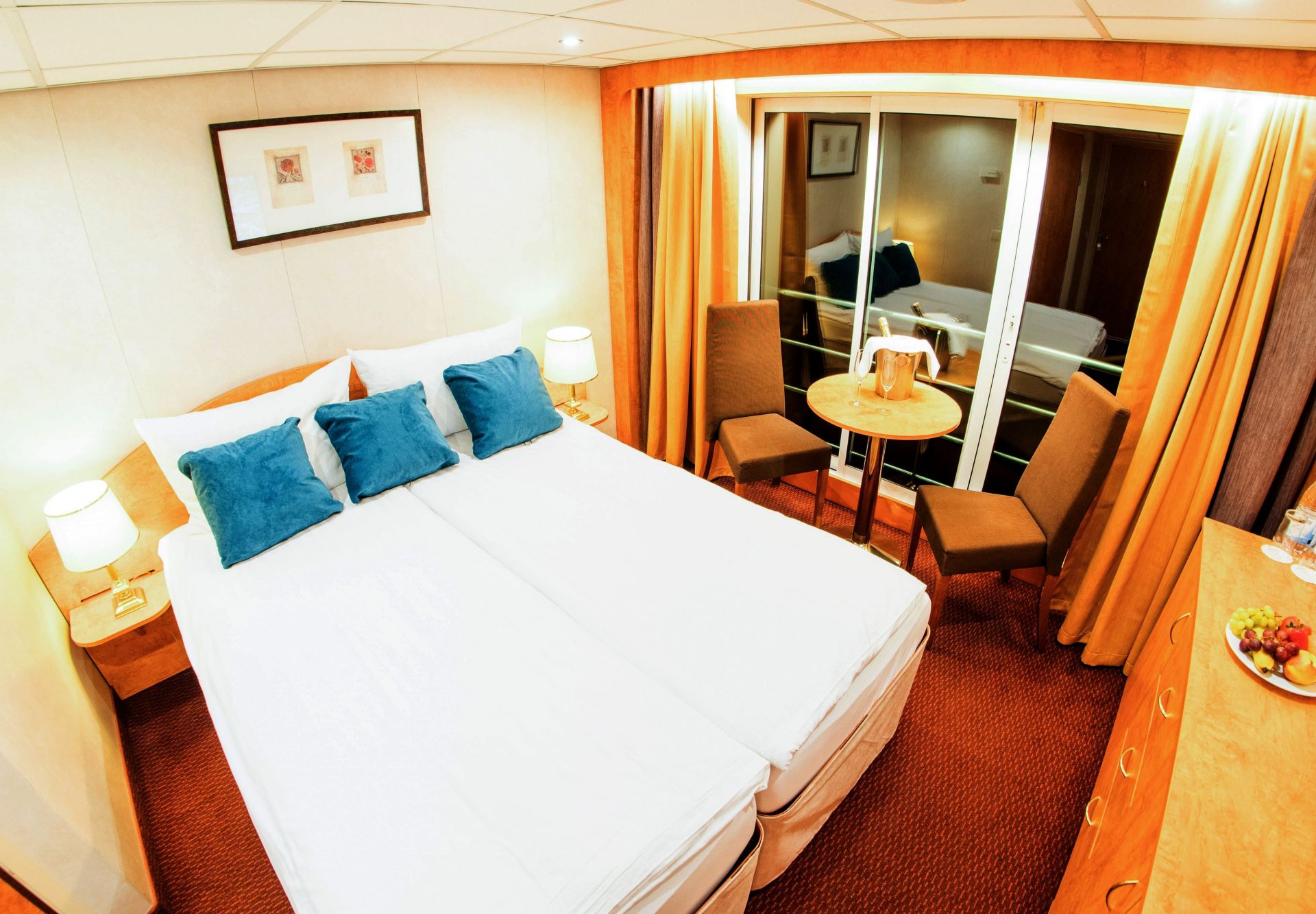 На долна и средна палуба има каюти с прозорец, който не се отваря. На средна и горна палуба са разположени каюти с големи френски прозорци, които се отварят (плъзгащи се). Каютите са около 14 кв. м. и са оборудвани с климатик, телевизор, телефон, сешоар, сейф. Суитите са около 21 кв. м. и имат още минибар и кафемашина.