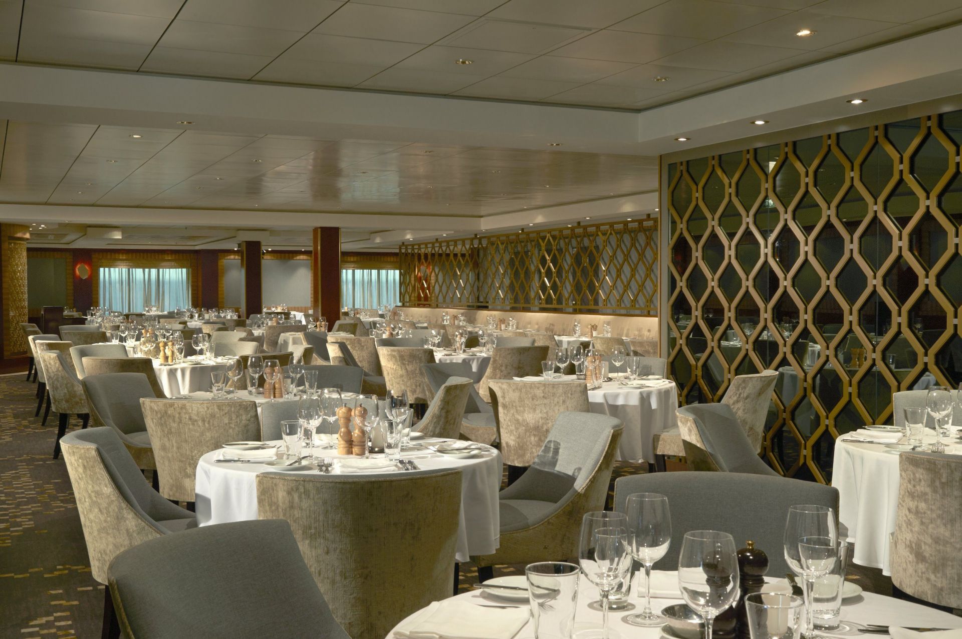 Корабът разполага с няколко заведения за хранене – основен ресторант, разположен на 2 дека, два бюфета на самообслужване, ала карт ресторанти: американски стек хаус Butcher’s Cut, Суши бар, Вила роса – панорамен ресторант.
