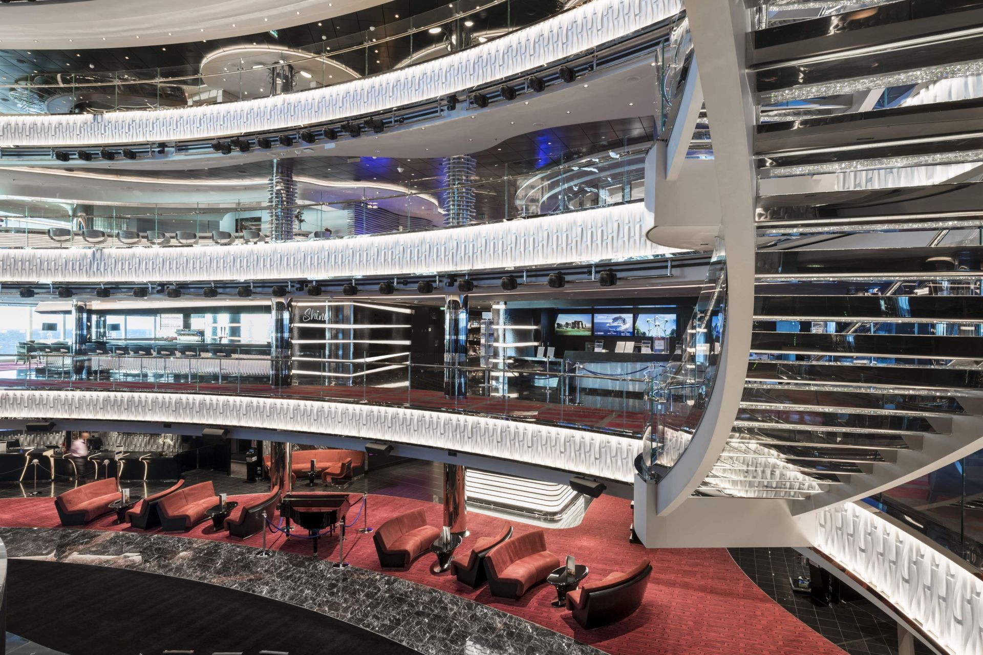 Театър с 1000 места, който представя различна шоу програма всяка вечер, казино. Централна променада с бутици и ресторанти, която вечер се оживява от партита и жива музика.