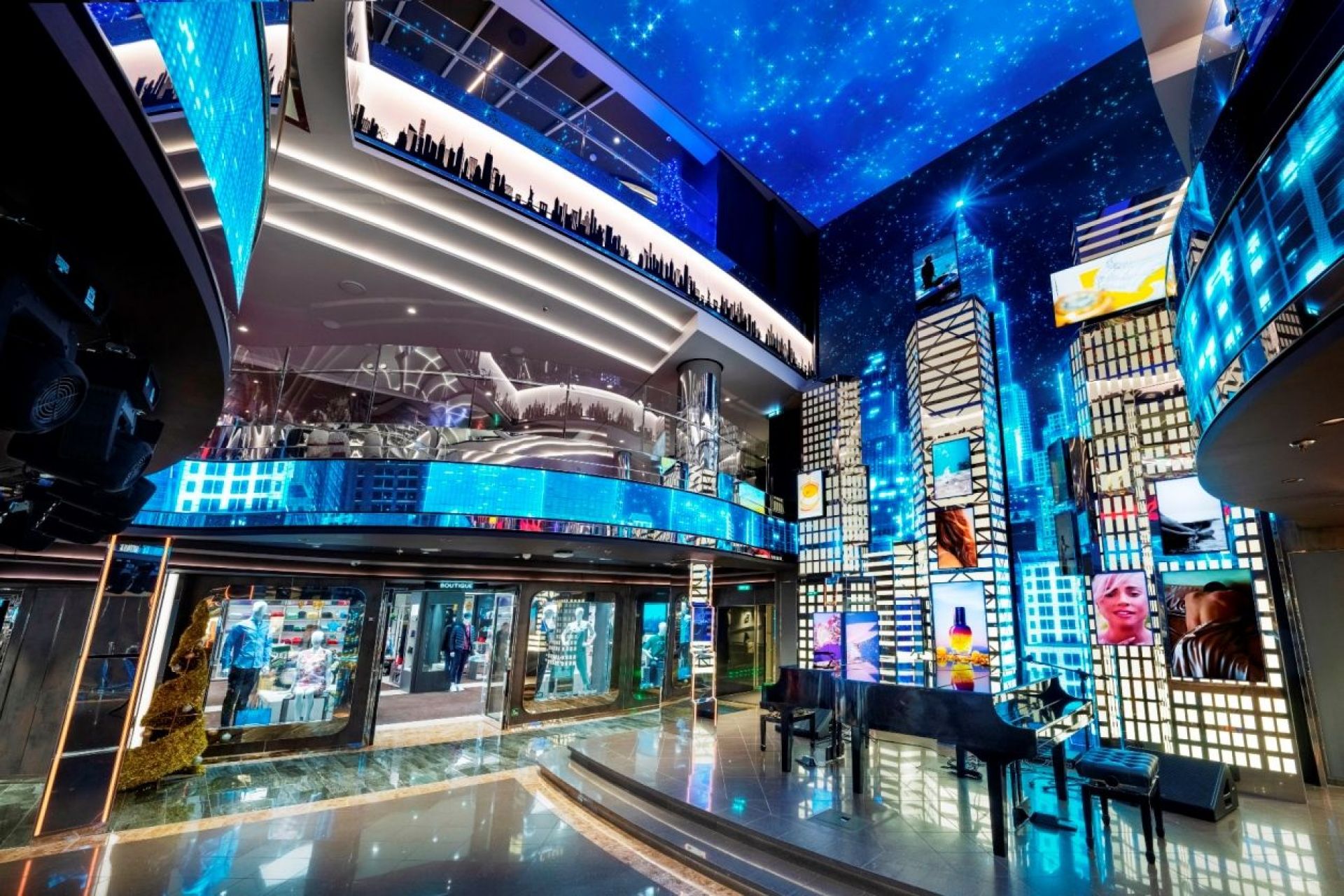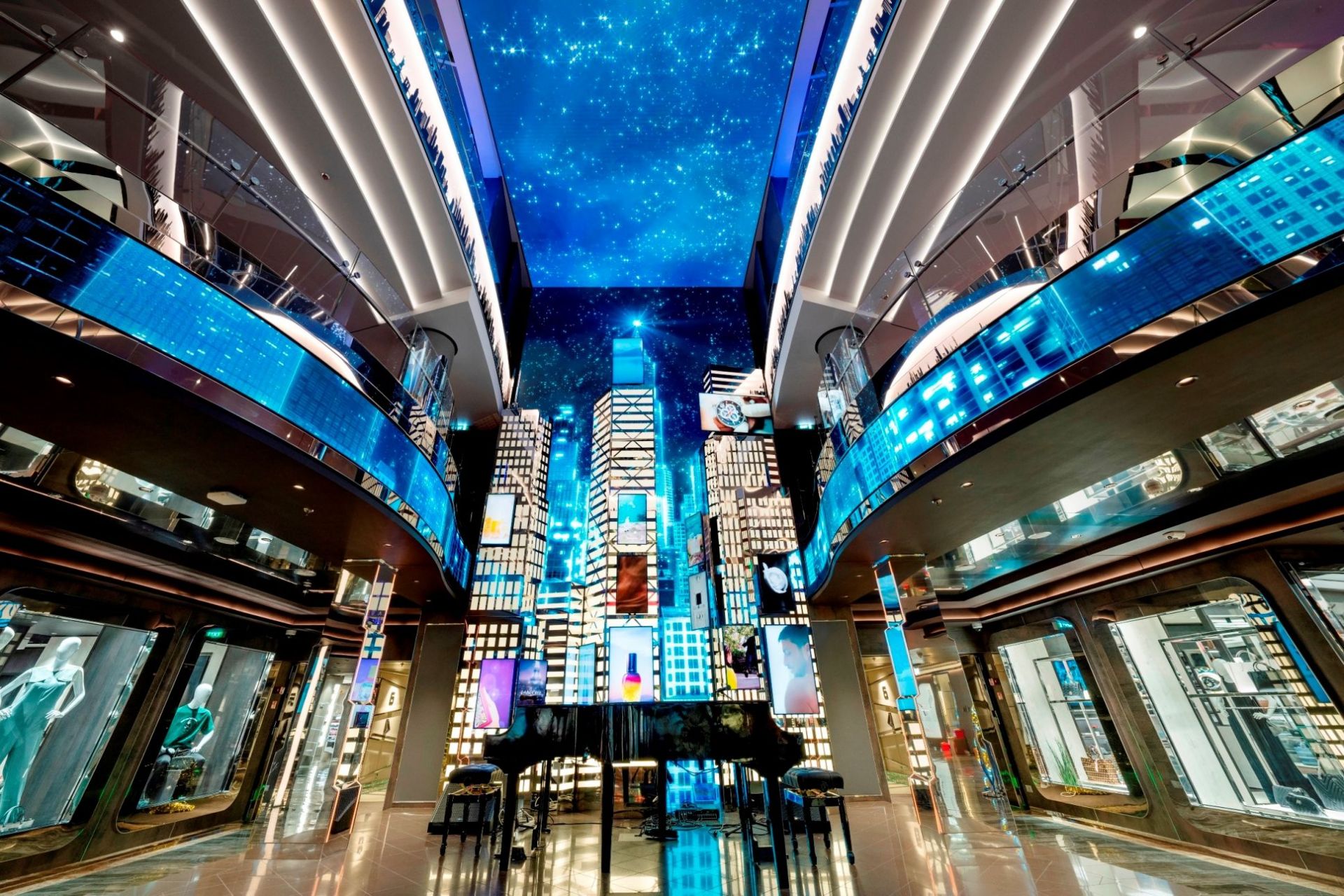 Дизайнът на корабът е вдъхновен от Ню Йорк. Ще видите внушителна триметрова реплика на Статуята на свободата в сърцето на казиното и новопроектираната обширна търговска и развлекателна зона, подходящо наречена Таймс Скуеър. Основната характеристика на тази нова зона е впечатляваща 8,5 метра висока LED стена, обхващаща четири палуби с проекция на емблематичния силует на този развлекателен център в Манхатън, който се променя през целия ден.