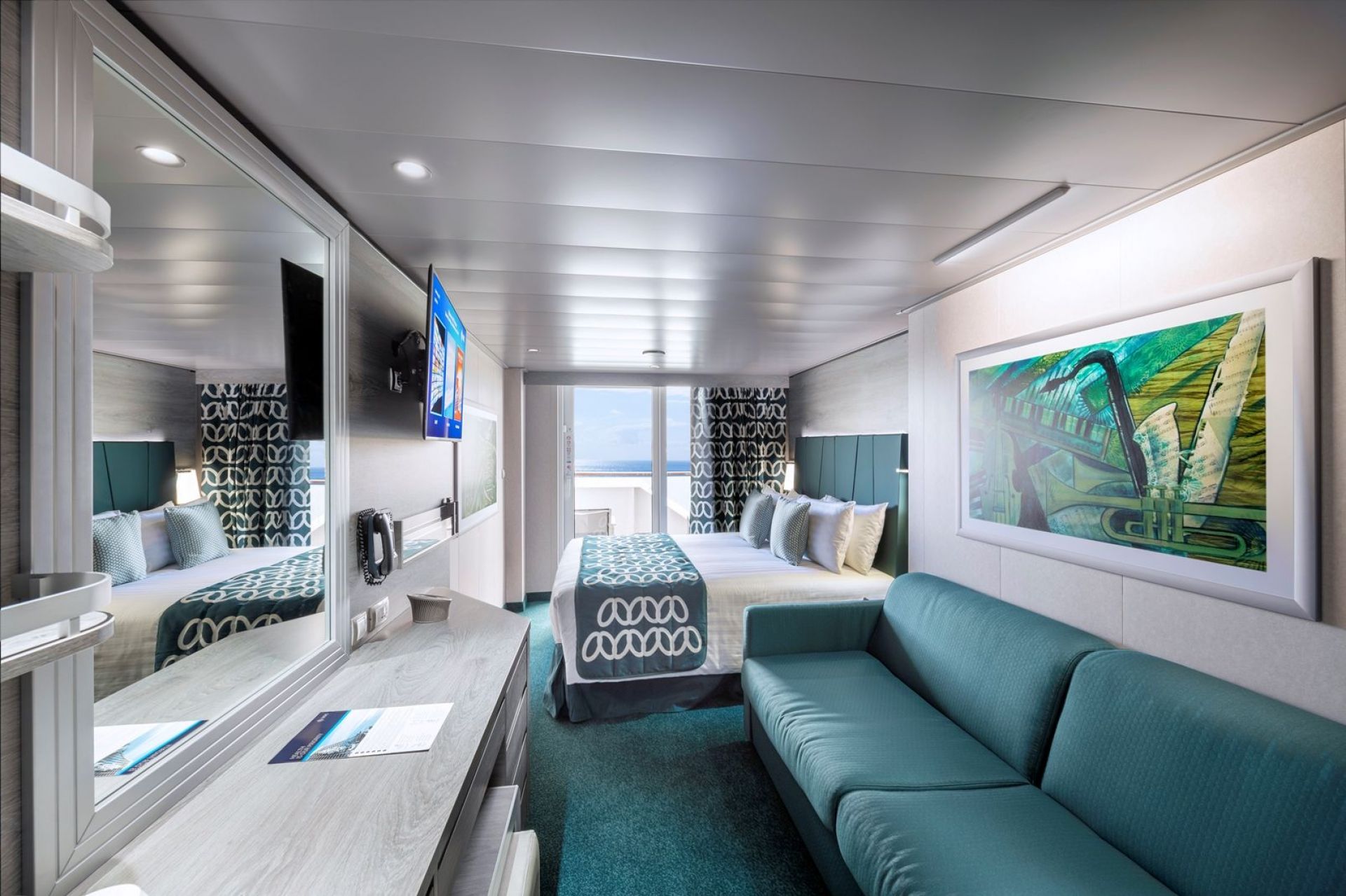 Тук отново можем да избираме между вътрешни кабини, кабини с прозорец или балкон и суити, както и стаи в най-луксозната част на кораба – Яхт клуб. Която и категория да вземете, ще имате на разположение модерно обзавеждане, 2 легла, които могат да бъдат събрани или разделени, индивидуален климати, телевизор, телефон, баня, сешоар, сейф, минибар, интернет.