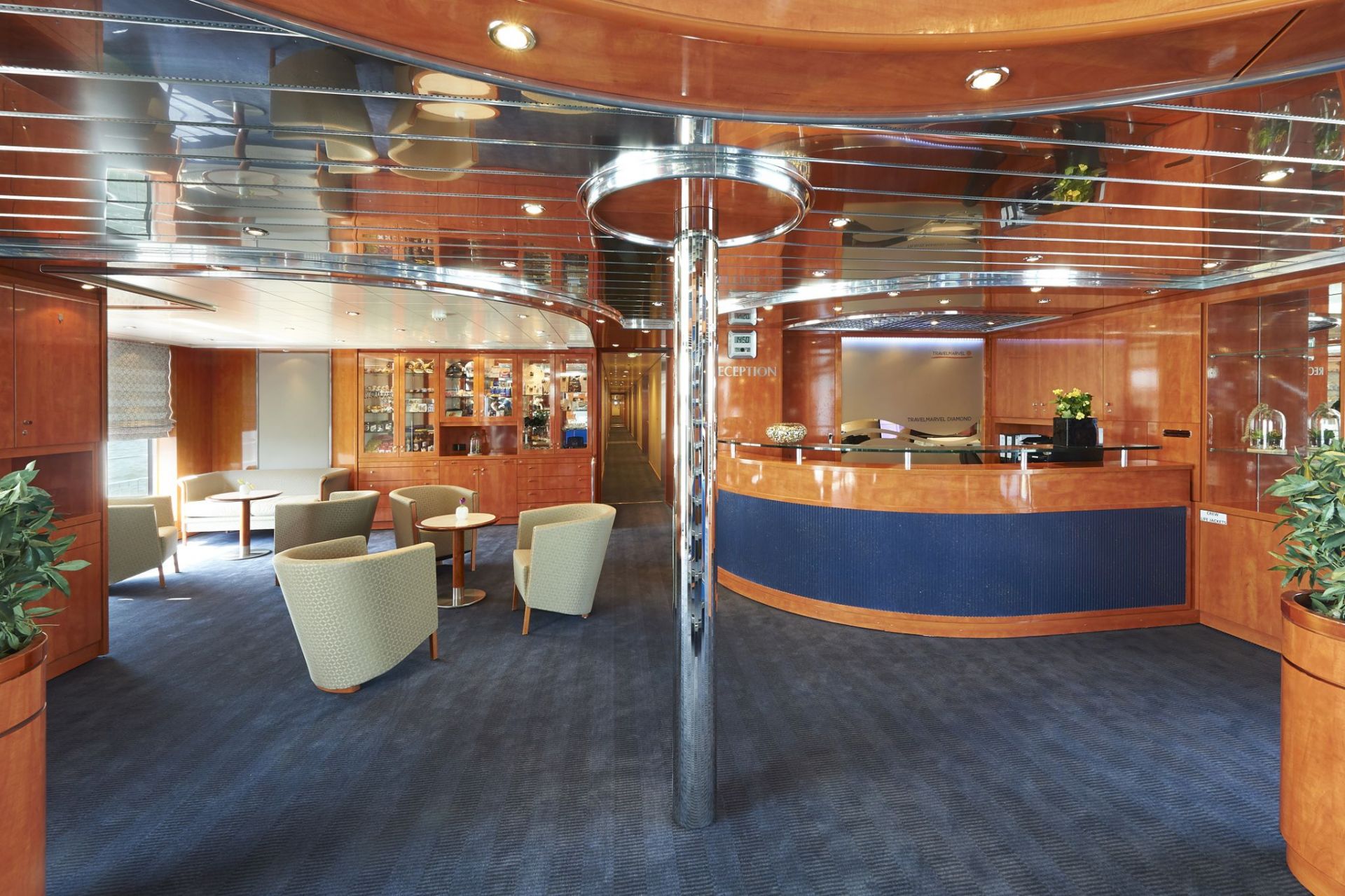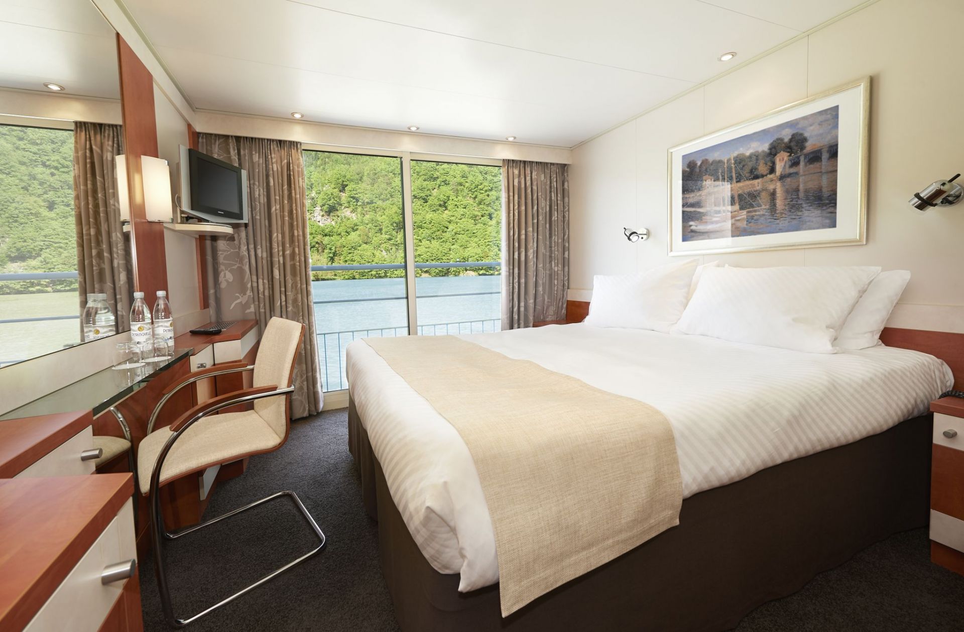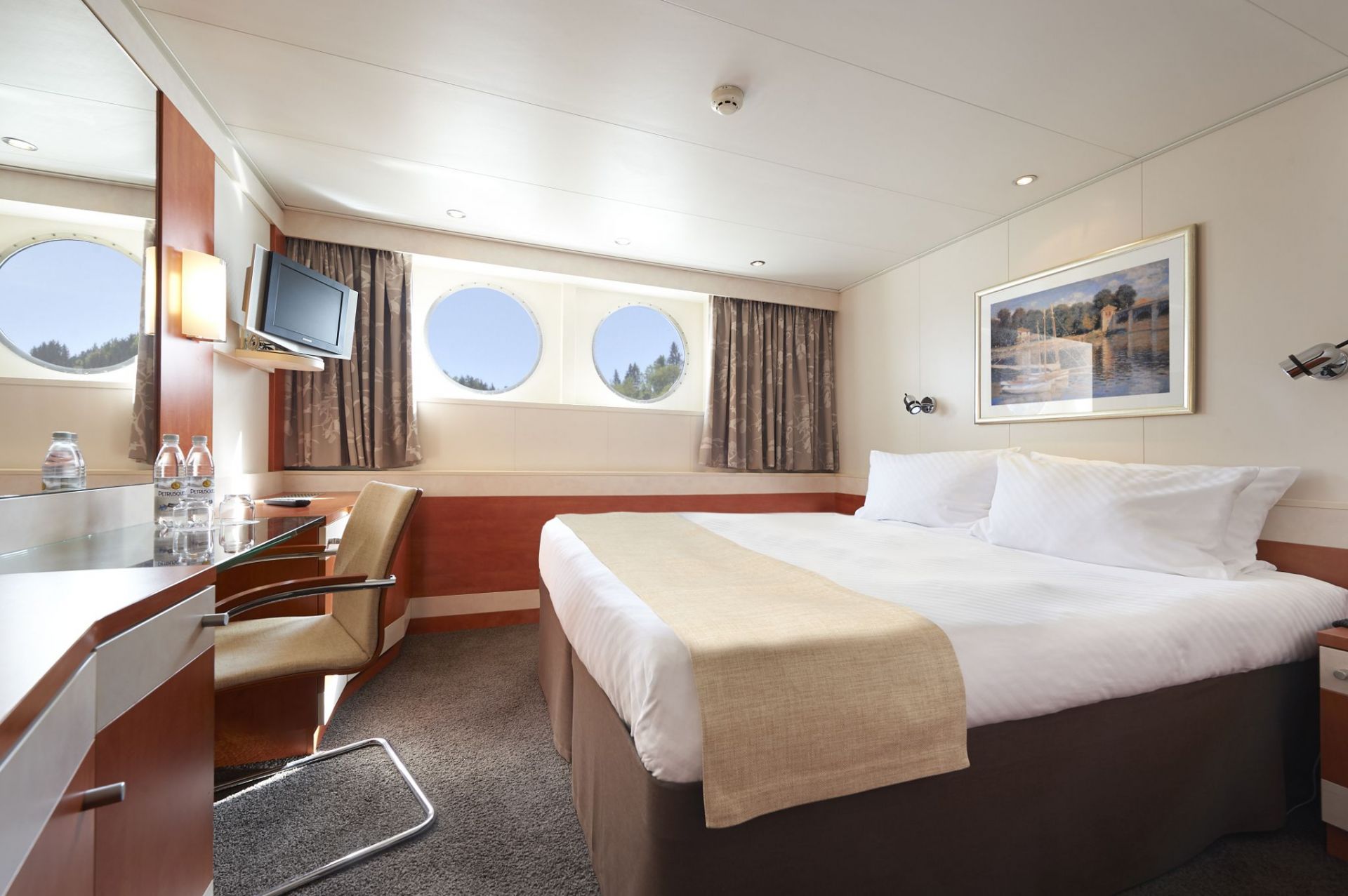 Каютите на основна палуба са с илюминатори, а каютите на средна и горна палуба са с големи френски прозорци. Площта на кабините е около 15 кв. м. Всички каюти имат индивидуален климатик, сателитна ТВ, сешоар, баня и тоалетна.