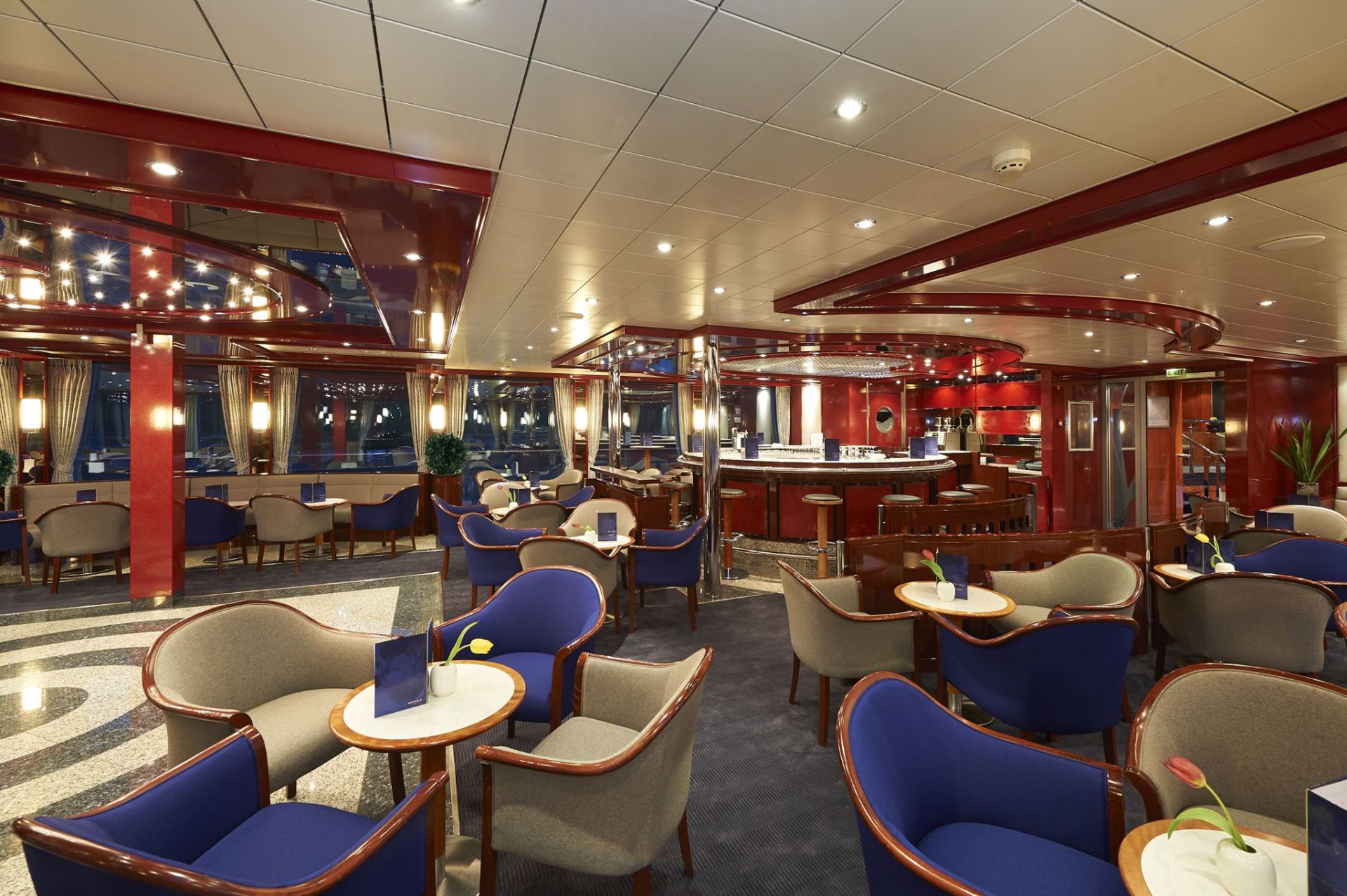 Каютите на основна палуба са с илюминатори, а каютите на средна и горна палуба са с големи френски прозорци. Площта на кабините е около 14 кв. м. Всички каюти имат индивидуален климатик, сателитна ТВ, сешоар, баня и тоалетна.