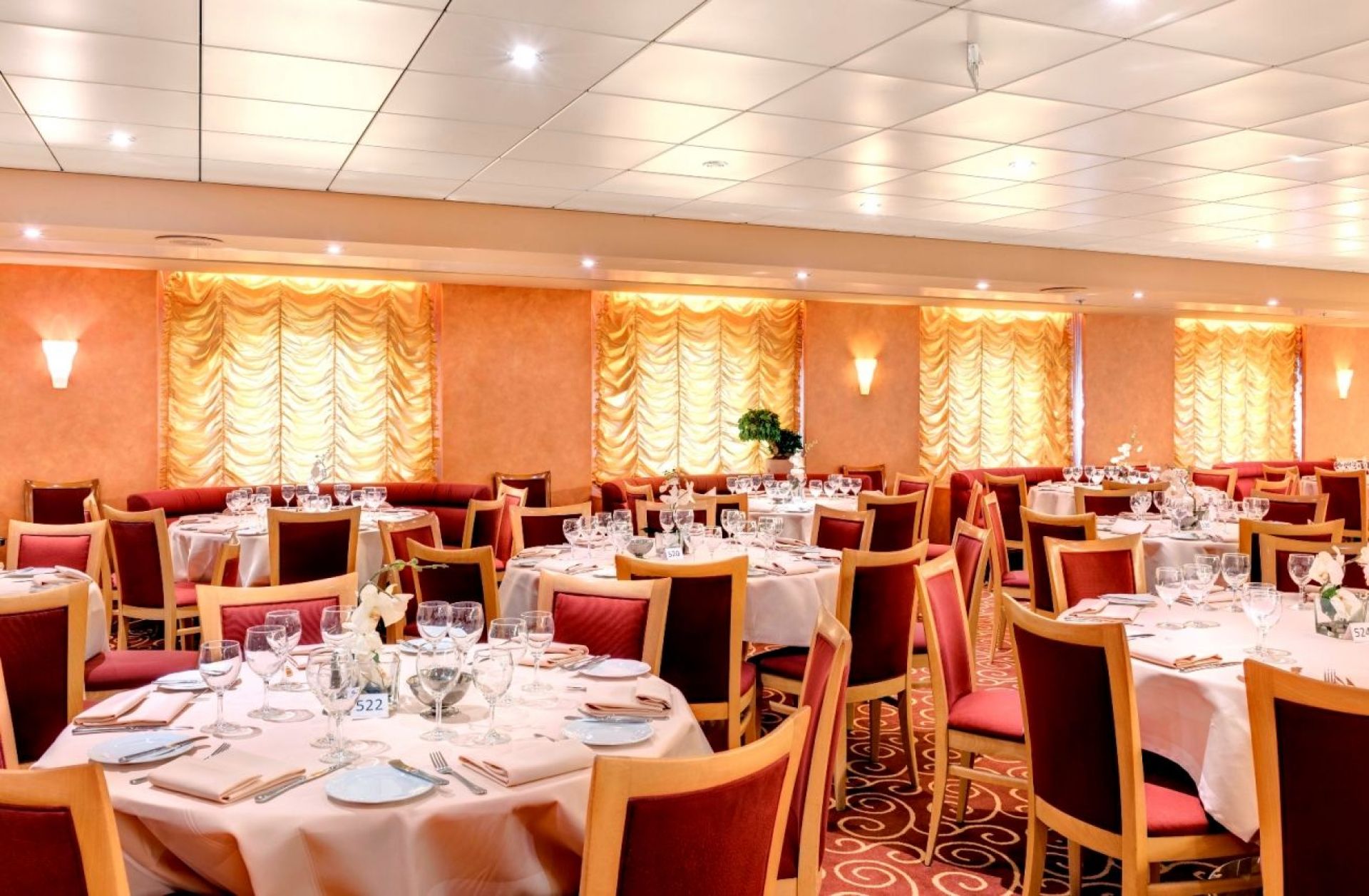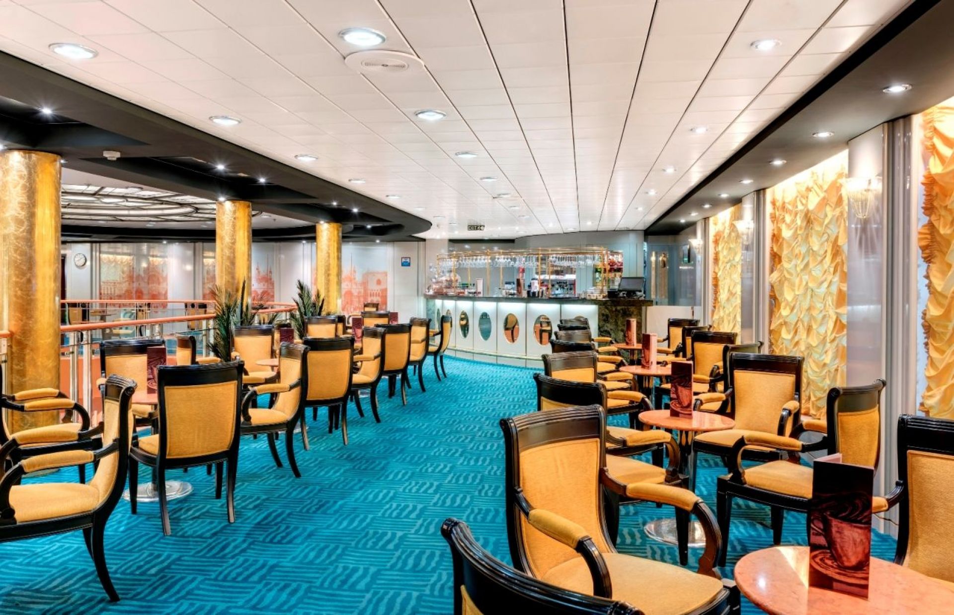 Два основни ресторанта Марко Поло и Ла Пергола и бюфет, включени в цената на круиза, ала карт Сърф и търф ресторант, грил, пица и паста бар.