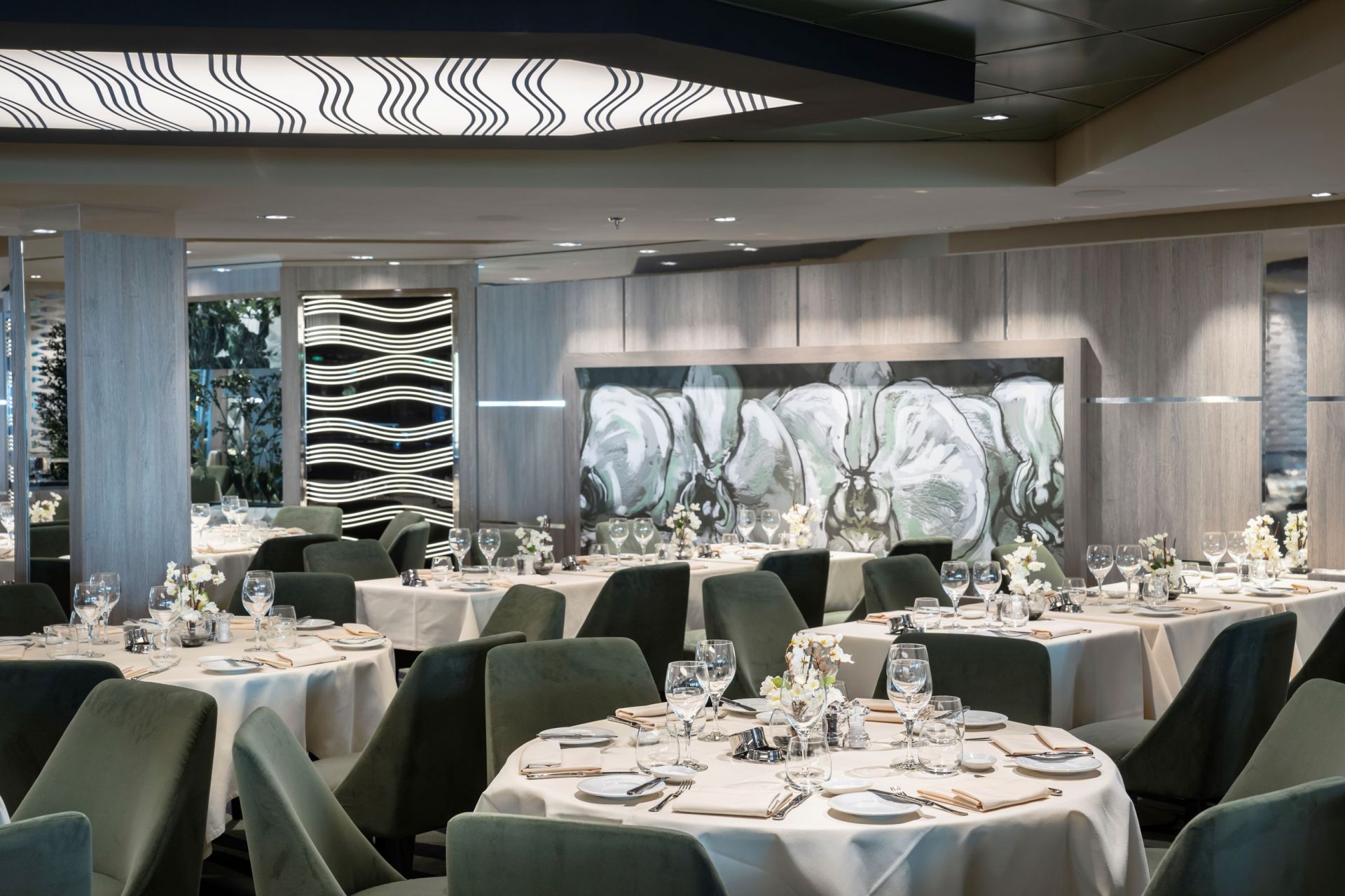 Класическата вече за корабите от флотилията вътрешна променада с LED таван, обградена от ресторанти и магазини, отново се превръща в център на социалния живот на борда, както и в сцена на различни партита и събития.