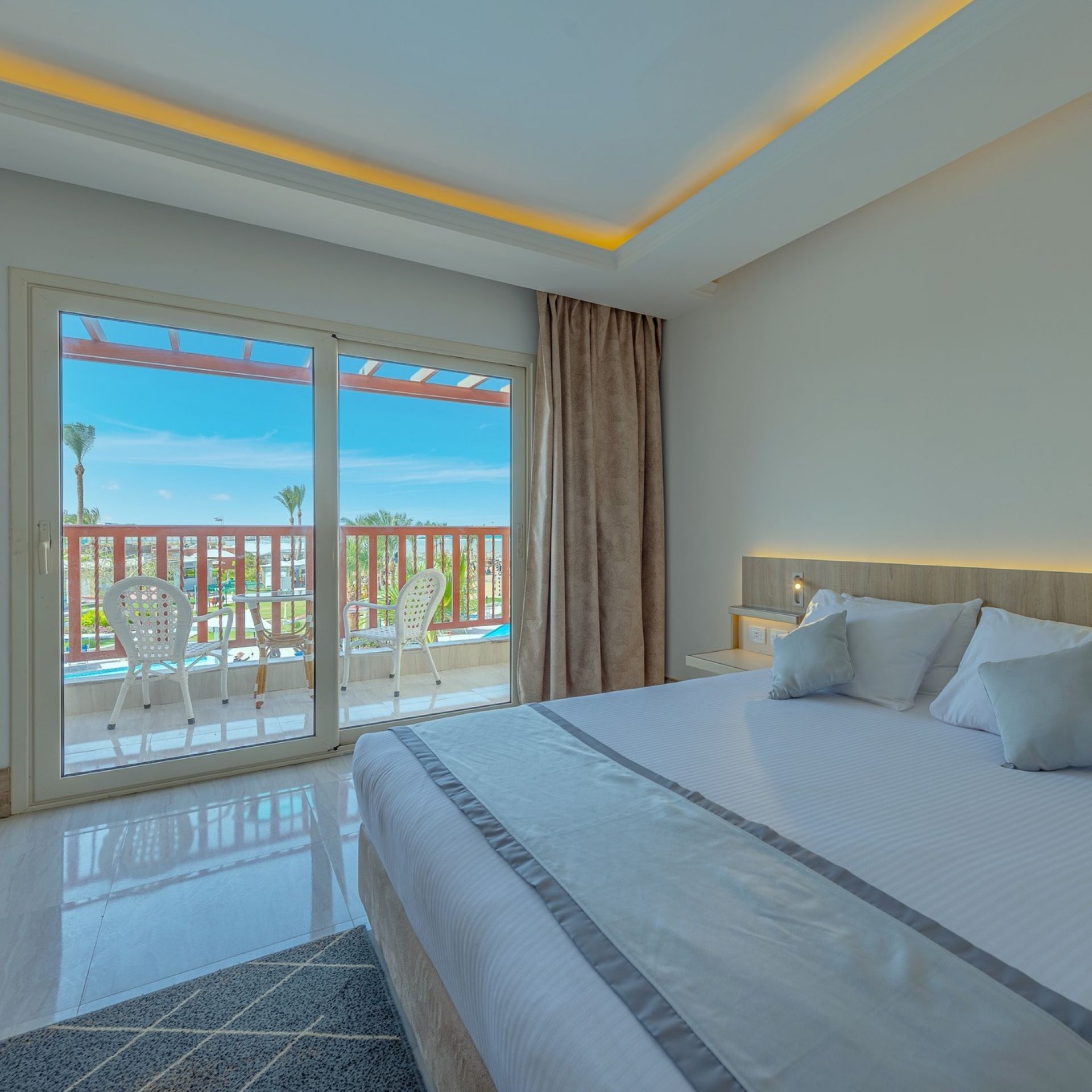Всички стаи са оборудвани с балкон или тераса, повечето стаи са заобиколени от вода, минибар,