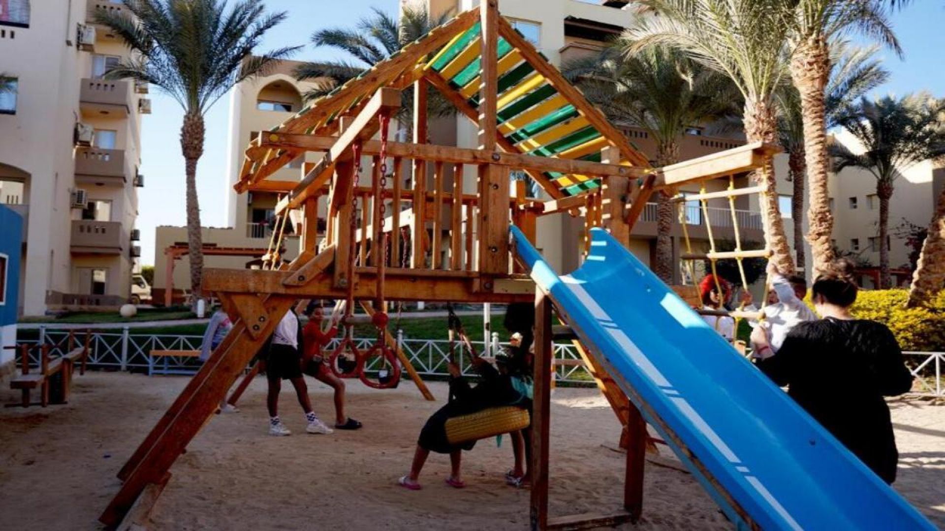 Аквапарк - Аквапарк с 4 пързалки за възрастни и 6 пързалки за деца, плажен волейбол, водни спортове, аква център, център за гмуркане, шах, дартс, билярд, тенис на маса, многофункционално игрище.Напълно оборудван детски клуб и детска площадка, включително частен плувен басейн. Предоставят се безплатно чадъри и шезлонги.