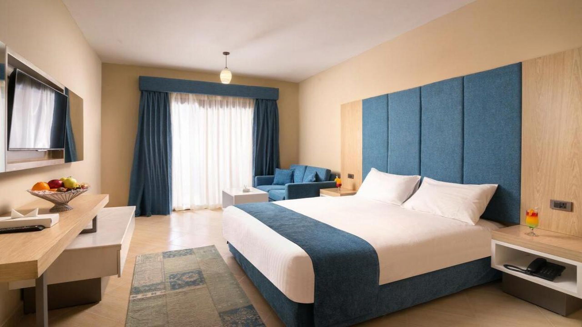 Комплексът е построен в арабски стил с модерно обзаведени стаи.