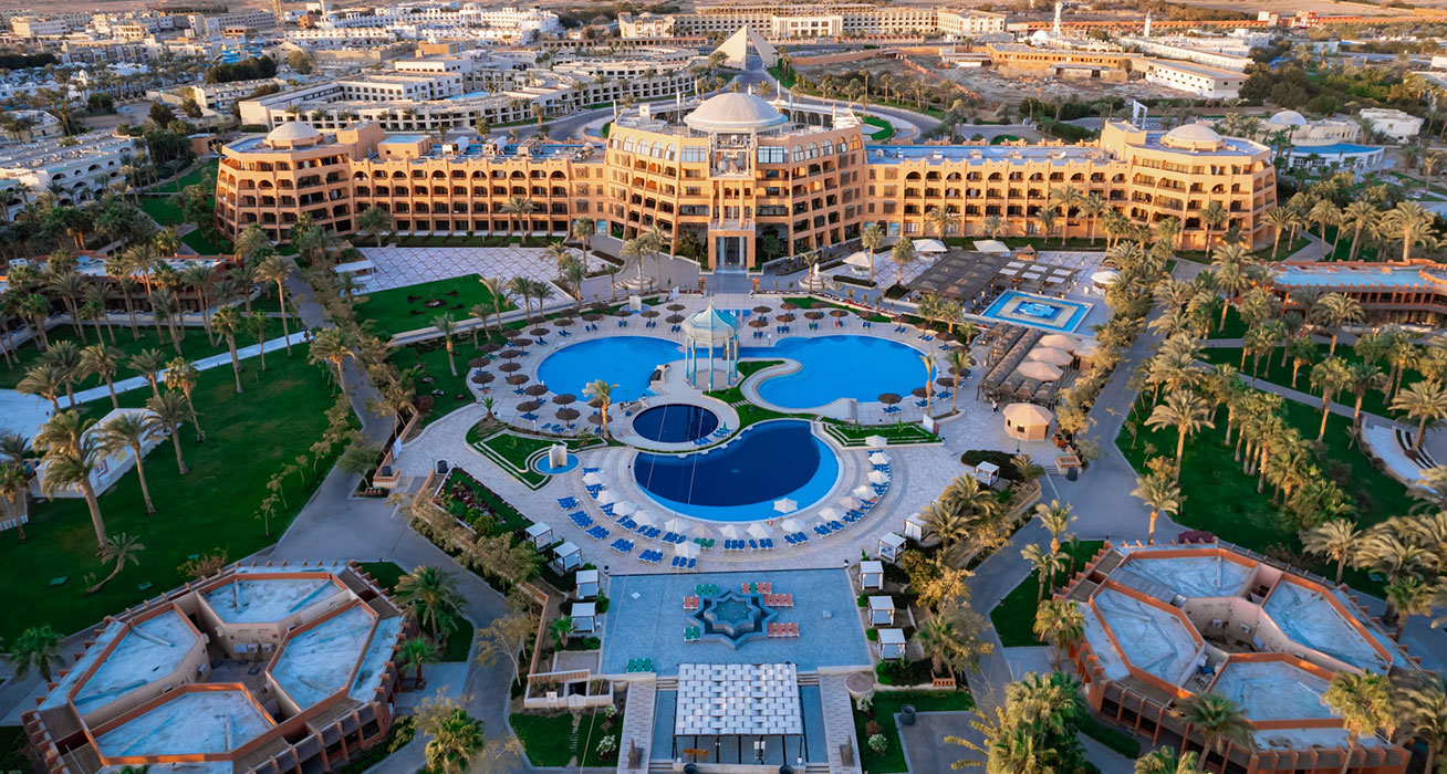 Намира се на 17 км. от летище Хургада, на 23 км. от центъра на Хургада, на брега на морето.