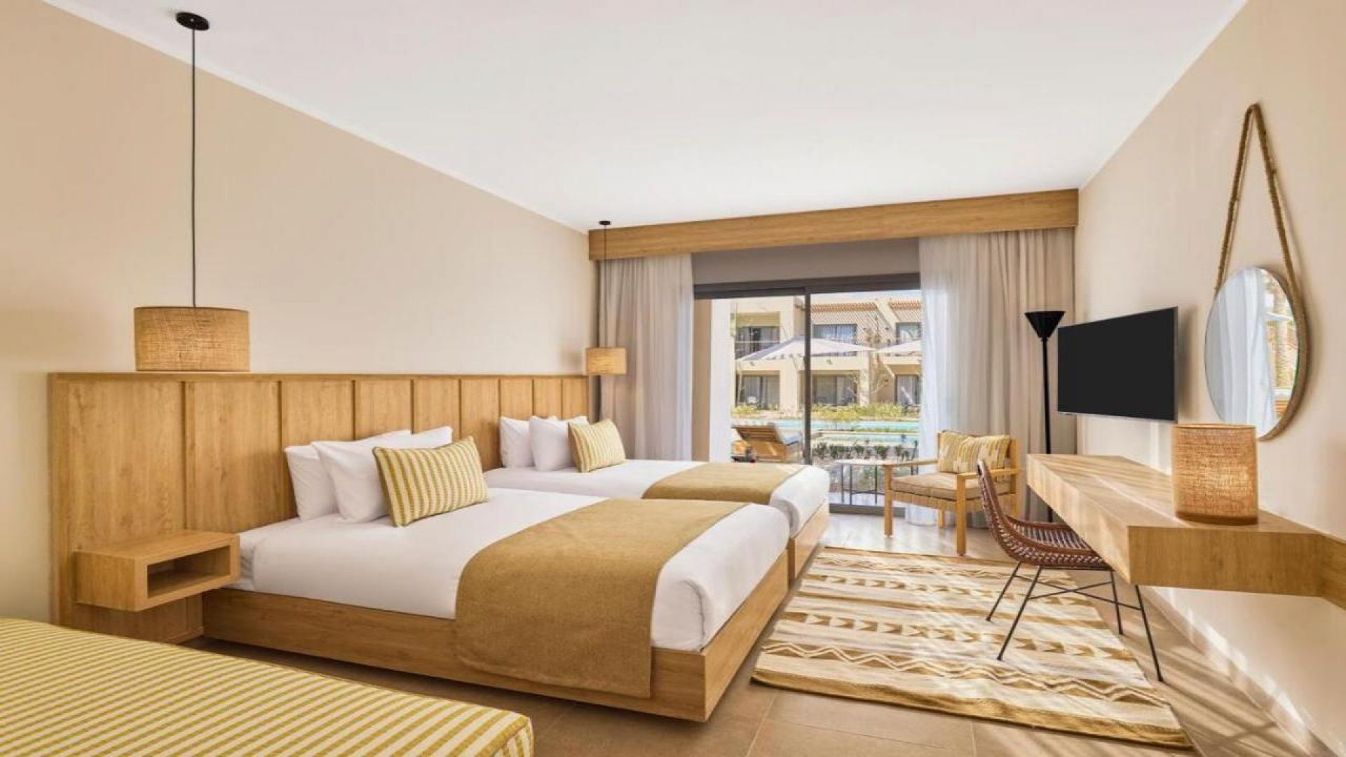 Standard стаи (около 32 м²): Стилно обзаведени с климатик, минибар, телевизор с плосък екран, сейф, безплатен Wi-Fi и удобни балкони с изглед към морето или градините.