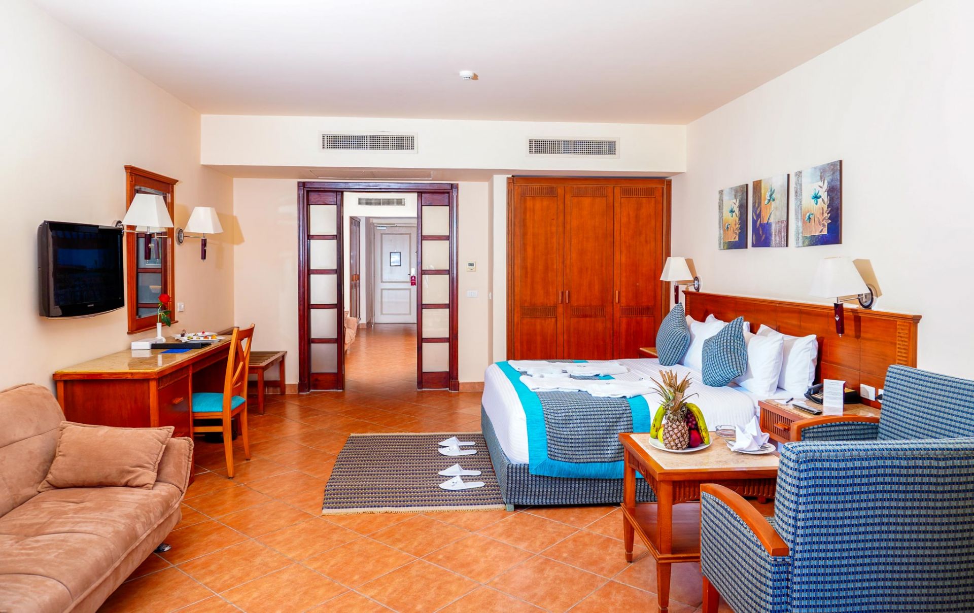 Всички стаи са оборудвани с климатик, телевизор, телефон, сейф (безплатен), минибар, сет за чай/кафе, баня с вана/душ, сешоар, тераса/балкон, тоалетни принадлежности. Почистване на стаите - всеки ден.