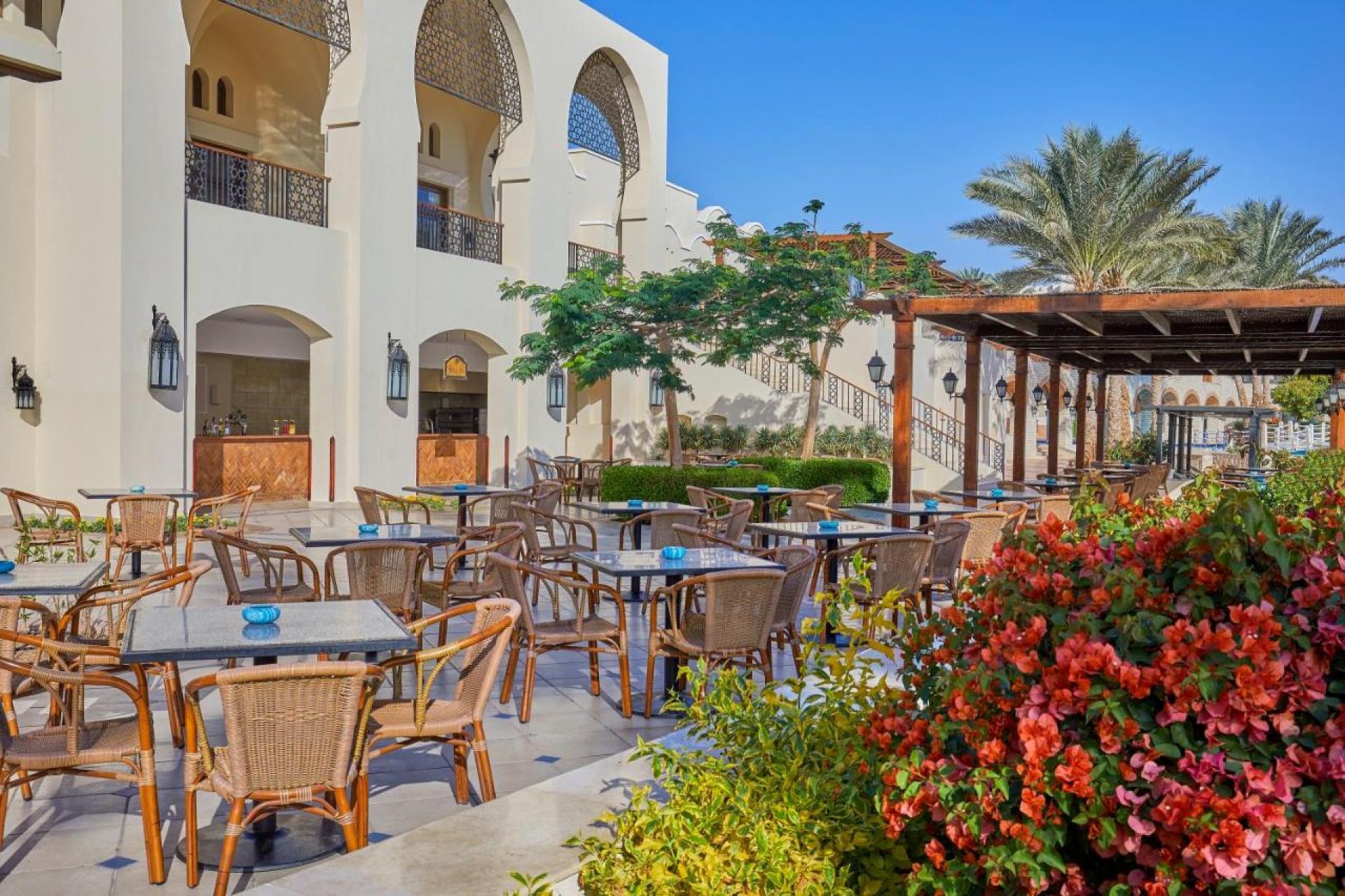 Основен ресторант Rehana, а ла карт ресторант Sayadeya (срещу заплащане/с предварителна резервация, съгласно концепцията на хотела/1 безплатно посещение при минимум 7 нощувки), 3 бара, 2 открити басейна (единият от които е отопляем), магазини, банкомат.