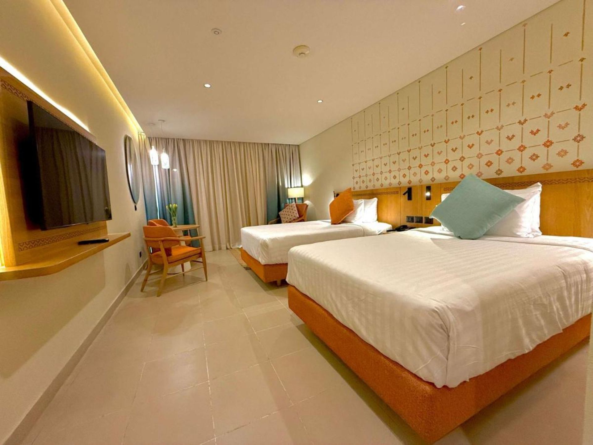 Всички стаи са оборудвани с климатик, телевизор, телефон, баня с вана/душ, сешоар, минибар (платено),сет за чай/кафе, сейф, балкон, Wi-Fi (безплатен). Почистване на стаите– всеки ден.
