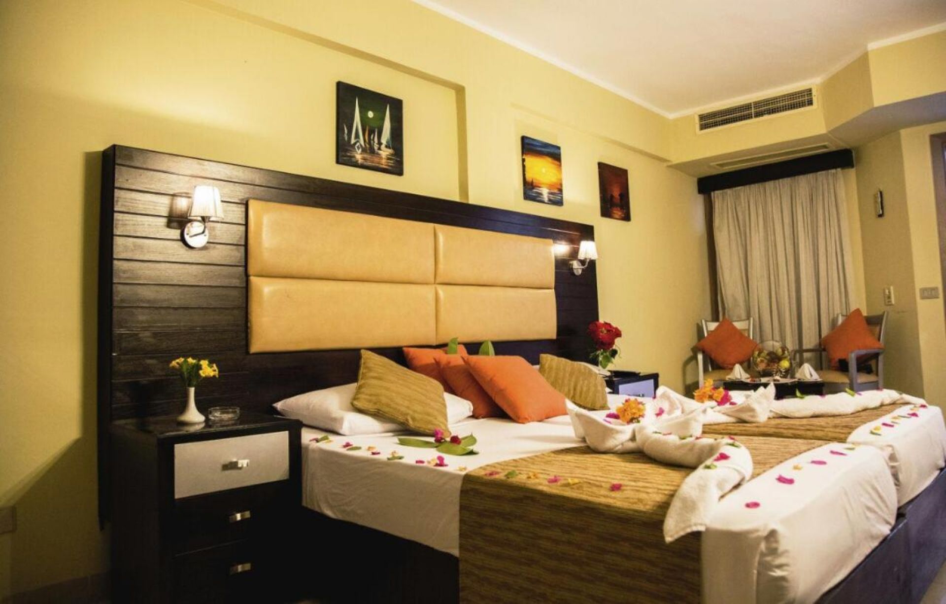 Всички стаи са оборудвани с климатик, телевизор, телефон, минибар, баня с вана/душ, сешоар, балкон/тераса. Почистване на стаите и смяна на кърпите – всеки ден, смяна на спалното бельо – 3 пъти в седмицата.