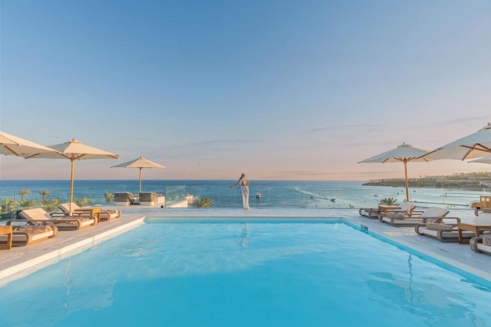 Собствен, коралов, кей. Чадъри, шезлонги и матраци на плажа и при басейна - безплатно.
