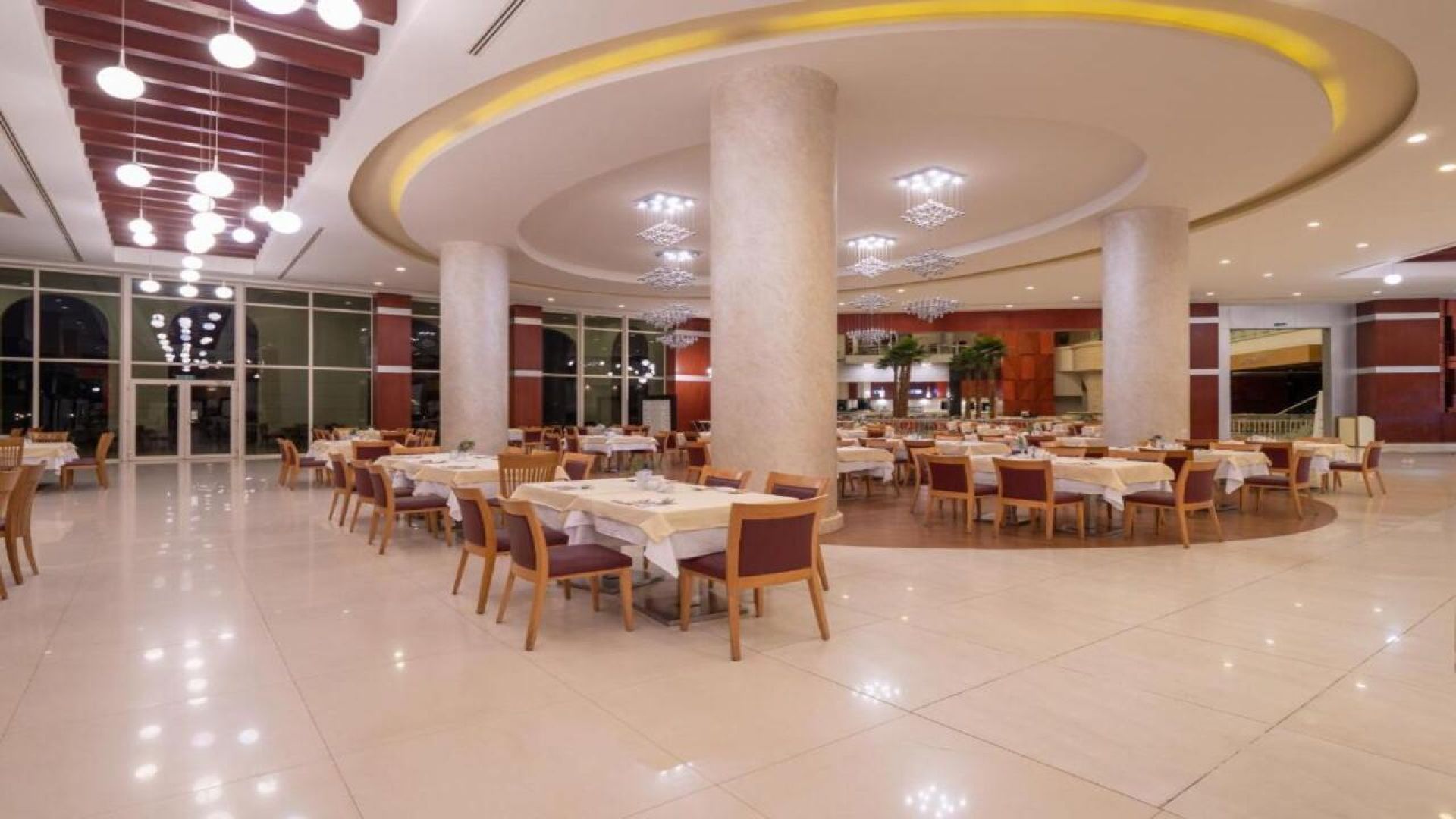 - Основен ресторант – международна кухня на бюфет с голямо разнообразие от ястия, тематични вечери и show cooking