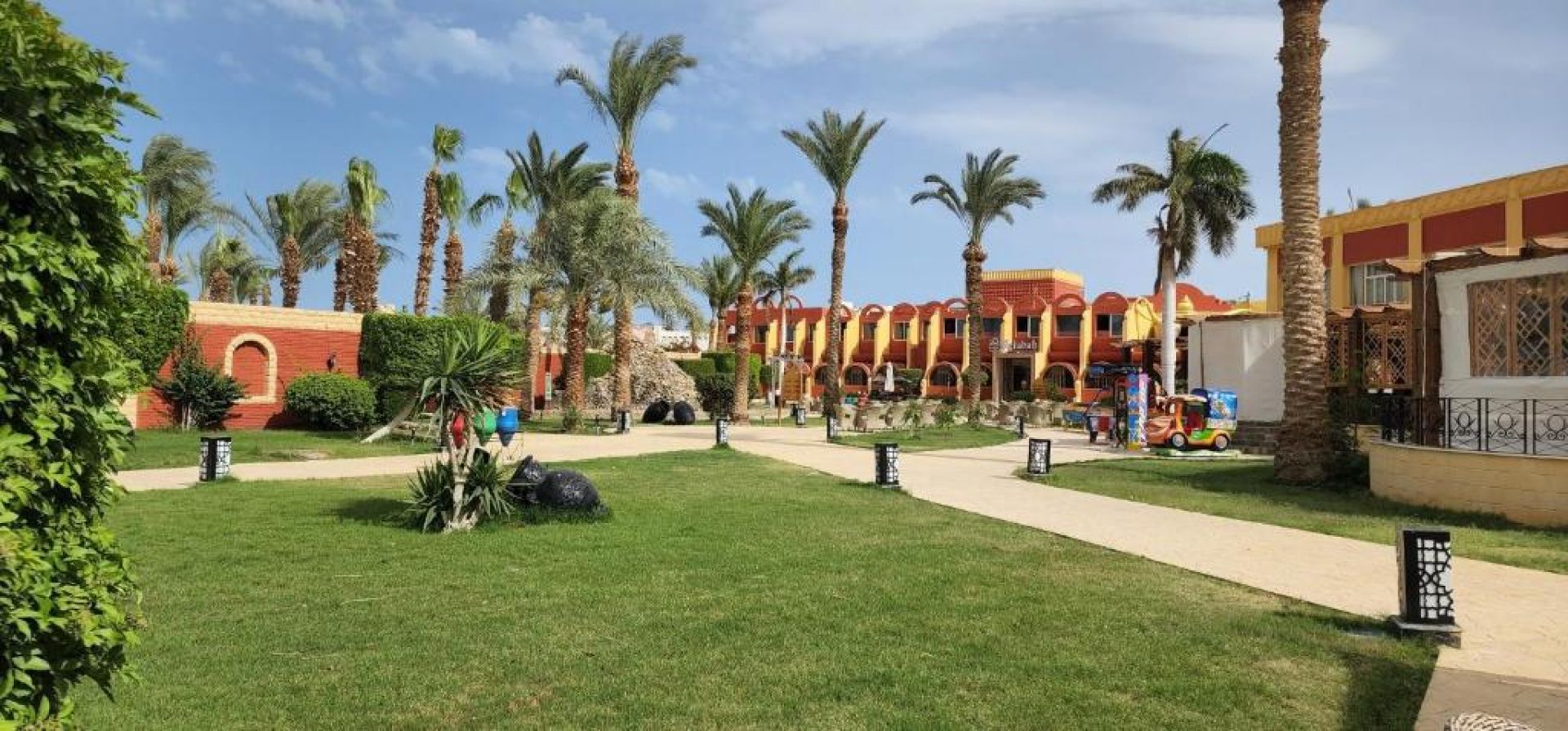 Намира се на 8 км. от летище Хургада, на 15 км. от центъра на Хургада, на брега на морето. Посторен през 1995г., всяка година частично се реновира.
