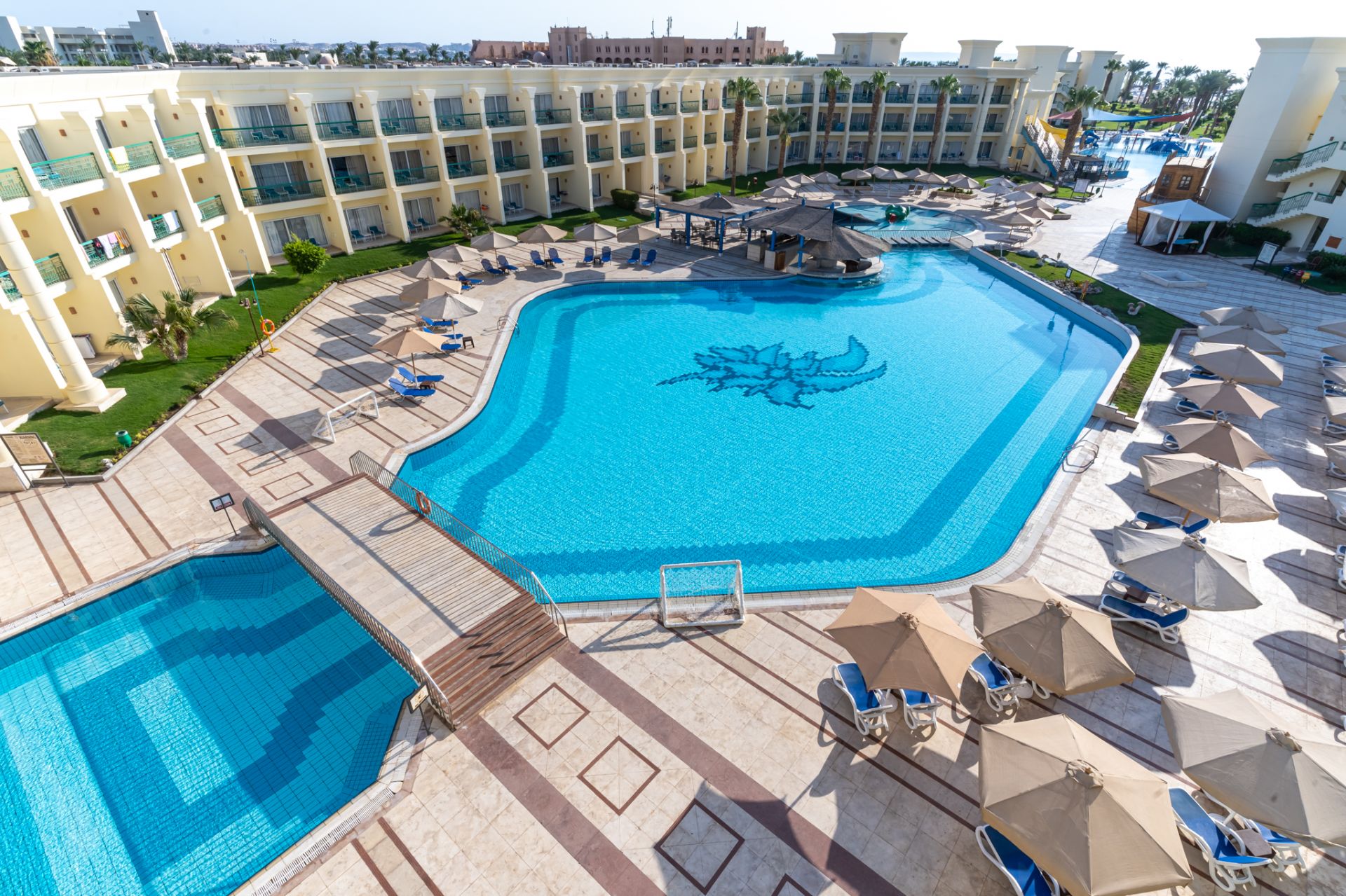 Намира се на 8 км от летище Хургада, на 15 км от центъра на Хургада, на брега на морето. Построен 1995 г., на обща площ от 90 000 м2. Реновиран 2018 г.
