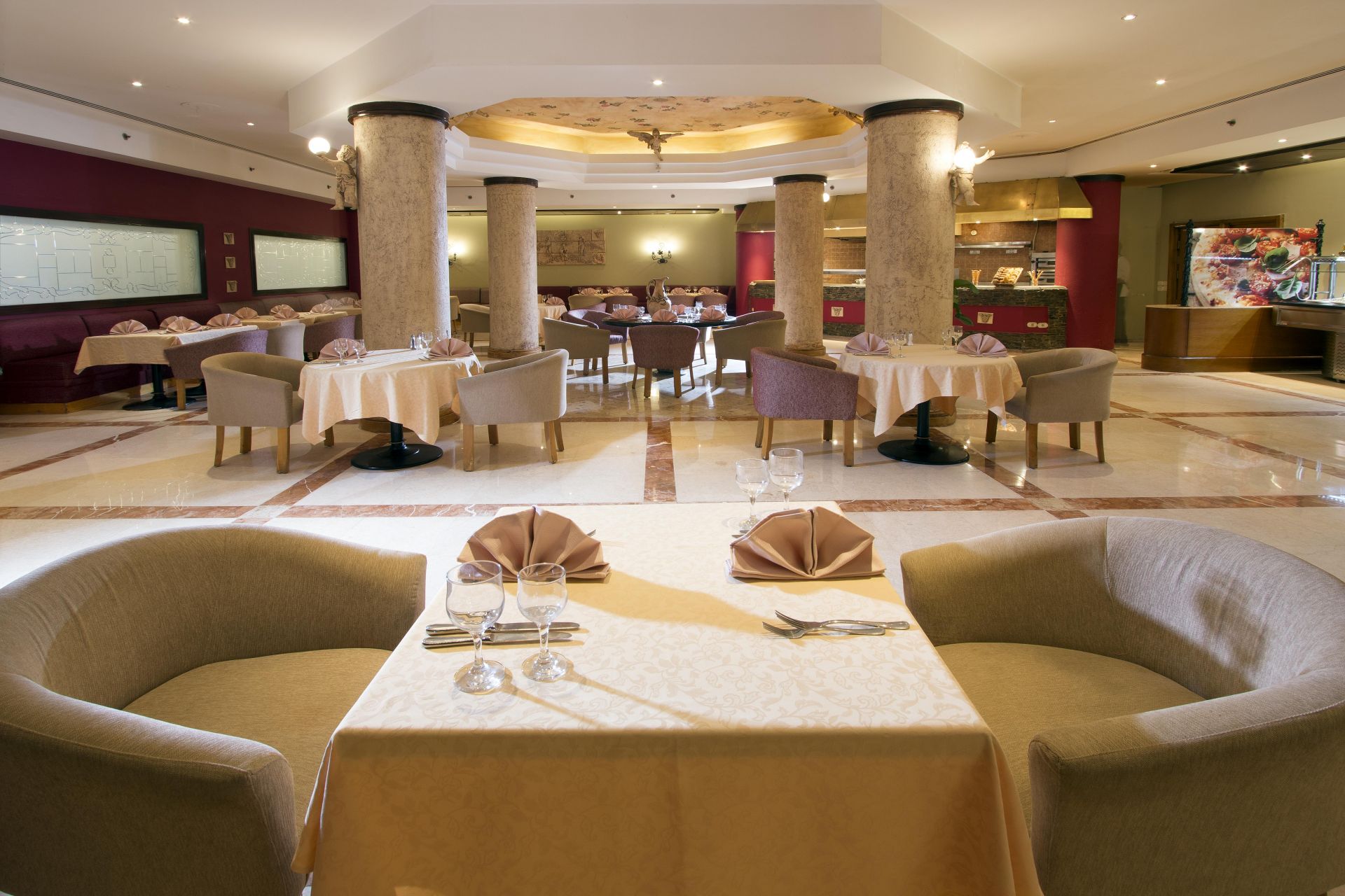 Основен ресторант, 4 а -ла карт ресторанта (рибен, ориенталски, италиански, азиатски - с предварителна резервация, съгласно концепцията на хотела), 7 бара, 2 открити басейна, (отопляеми през зимния сезон), аквапарк, СПА център, магазини, конферентна зала, паркинг.