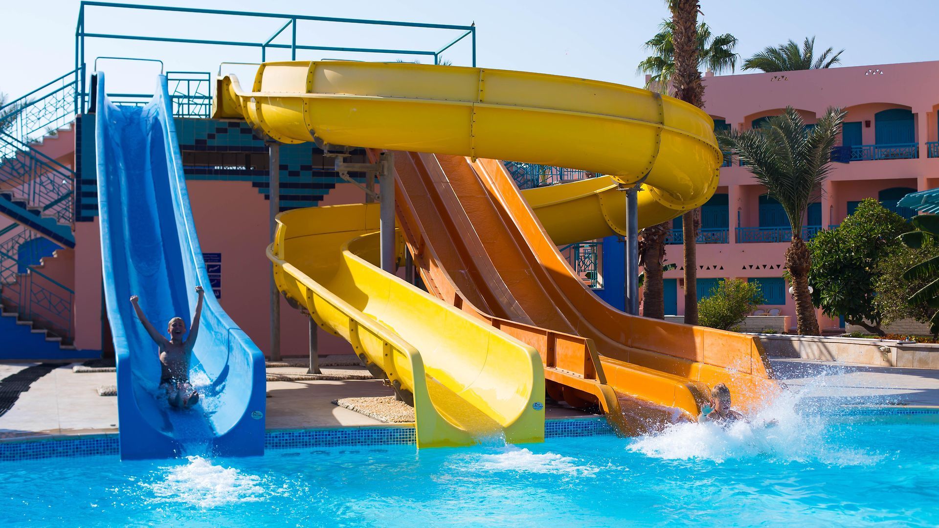 За децата: детски басейн, 2 водни пързалки, мини клуб (4-12г.), детска площадка.
