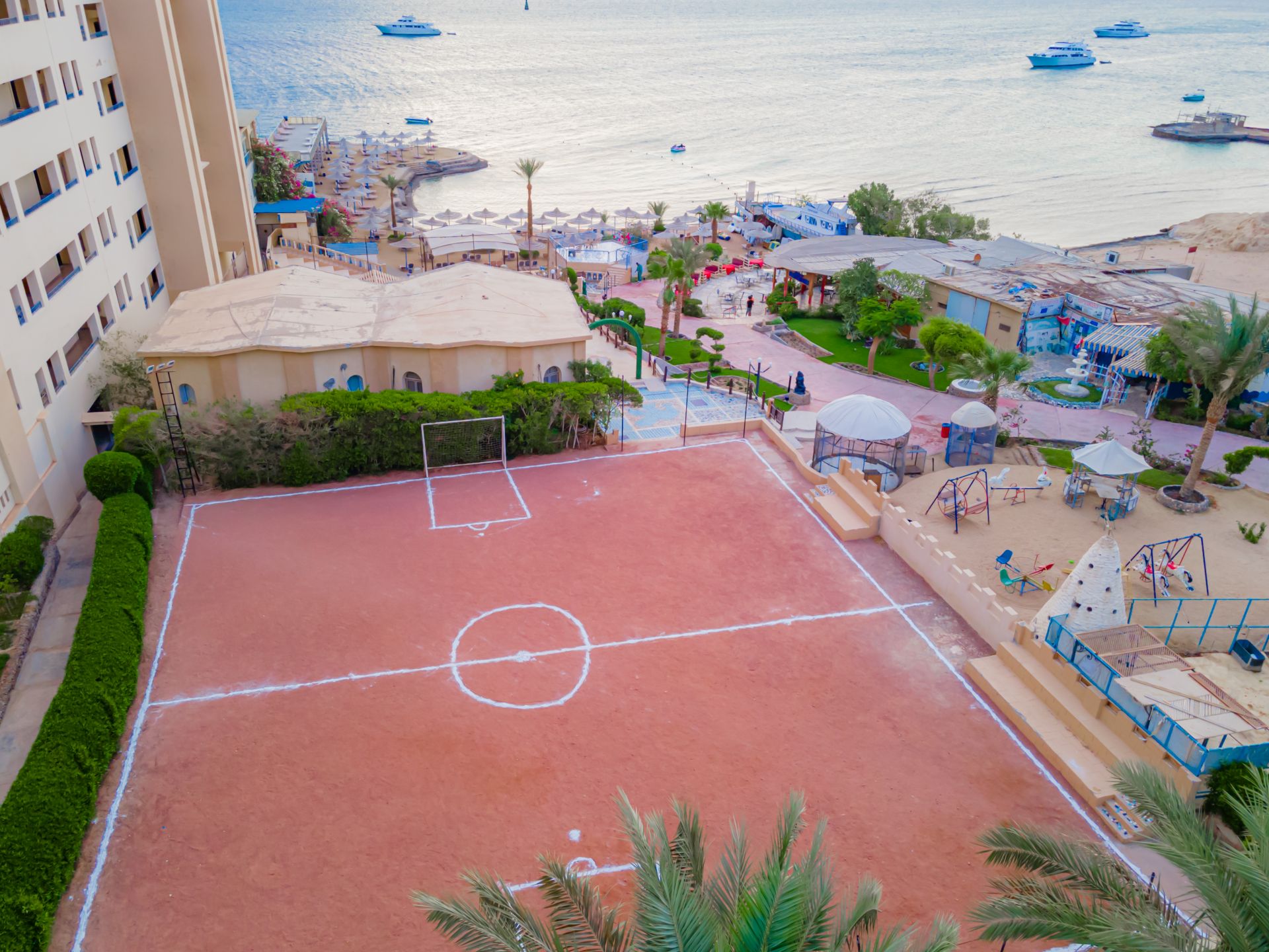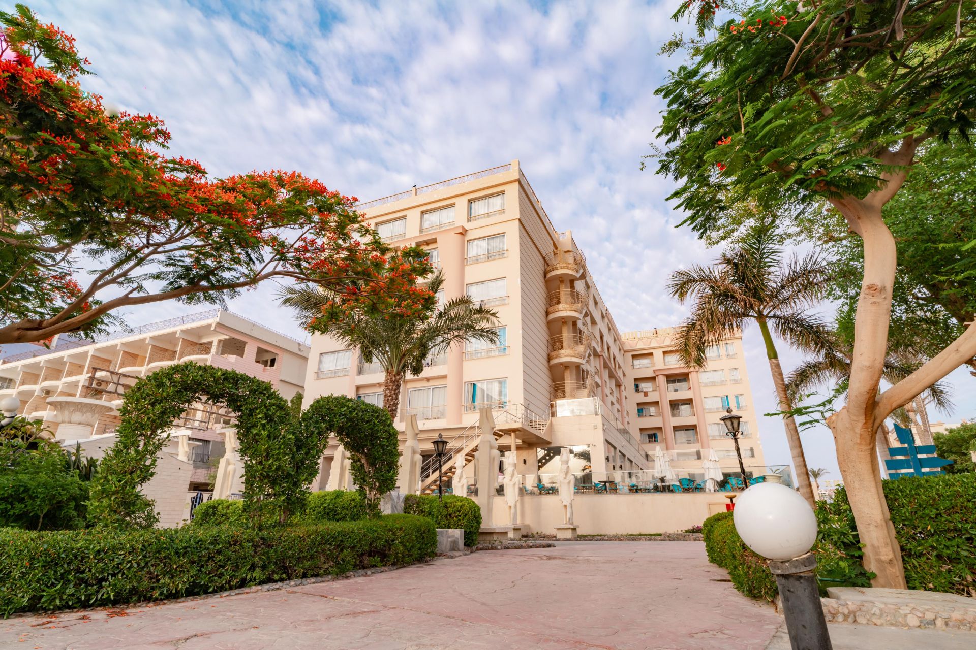 Намира се на 8 км от летище Хургада, на 3 км от центъра на Хургада, на брега на морето. Построен 2010 г., на обща площ от 15 000 м2.