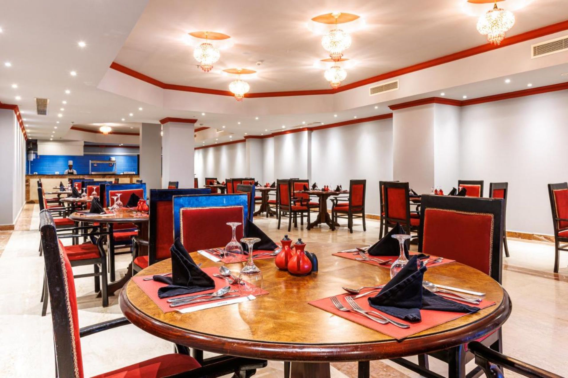 Основен ресторант, 3 а-ла-карт ресторанта, външен снак ресторант, 5 бара, дискотека, 2 открити басейна с детска секция, тенис корта (с твърдо покритие), СПА център, 2 конферентни зали, магазини.