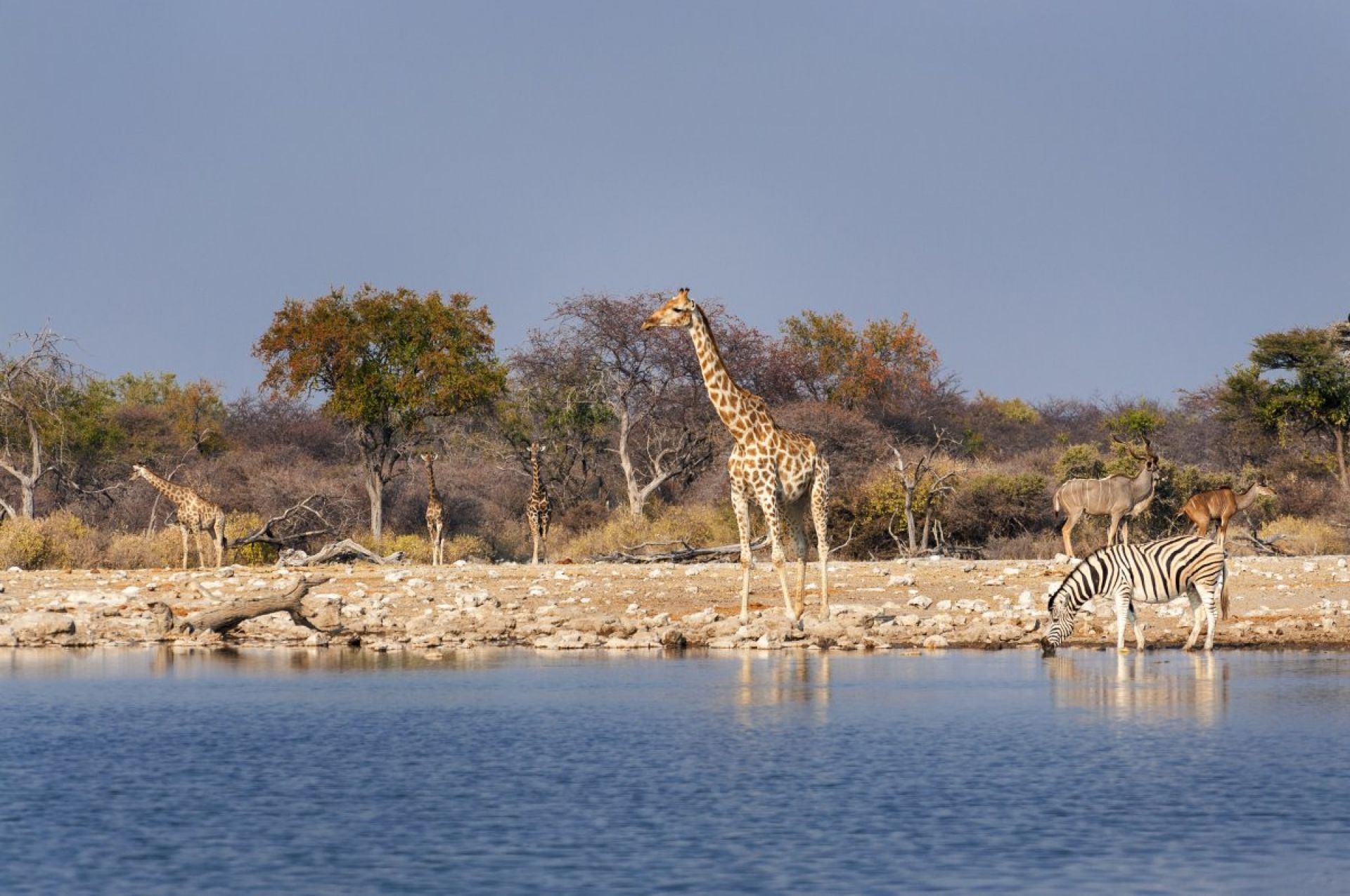 Закуска. Целодневнo сафари в югозападната част на Национален парк Етоша. През по-сухите месеци на годината почти всички животни се събират около водоемите, разпръснати из огромния парк. Те идват да пият вода и неизменно са последвани от хищници. Ако седнете и изчакате край някои от водоемите ще станете свидетели на това живописно действие. Връщане в лоджа след сафарито за вечеря и нощувка.