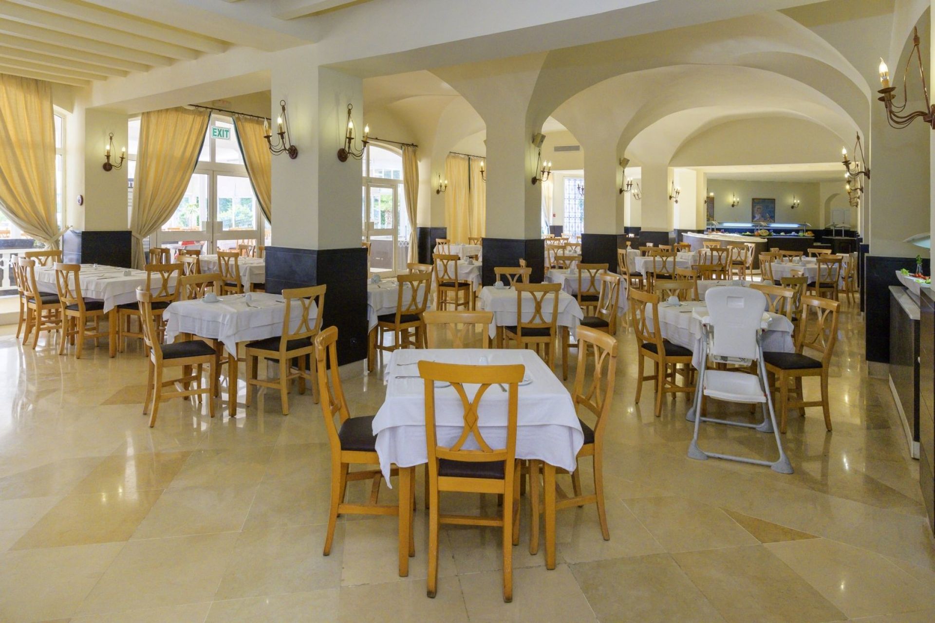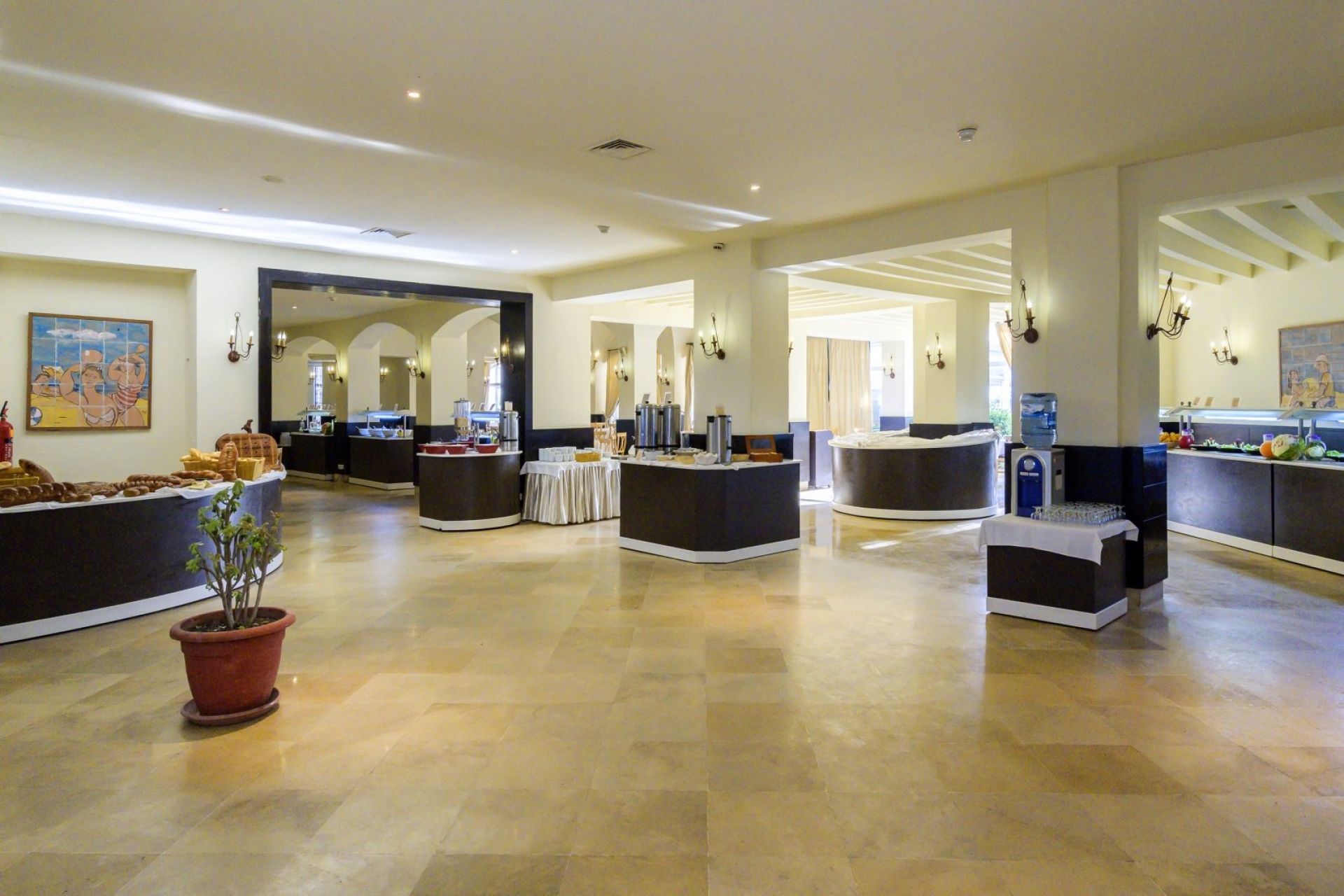Основен ресторант Thusdrus, 2 а ла карт ресторанта - един с интернационална кухня и втори на плажа, барбекю ресторант (едно безплатно посещение на престой, след предварителна резервация), лоби бар, бар басейн, мавританско кафене, 2 открити басейна, закрит басейн, вътрешен басейн с морска вода в таласо центъра, 5 водни пързалки за възрастни и 1 за деца, анимация, Wi-Fi в лобито, общи части и стаите, сувенирен магазин, обмяна на валута, паркинг.