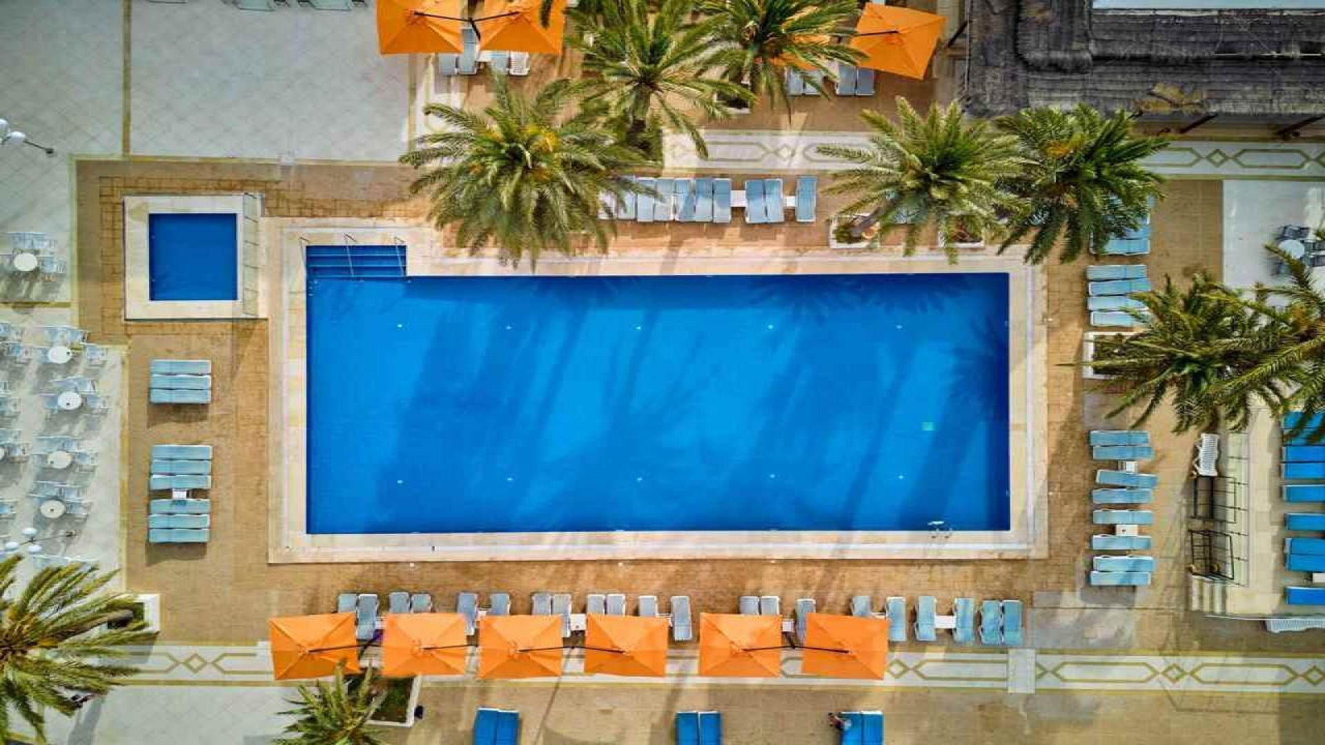 Собствен, пясъчен. Чадъри, шезлонги и матраци на плажа и басейна - безплатно. Плажни кърпи - безплатно, срещу депозит.