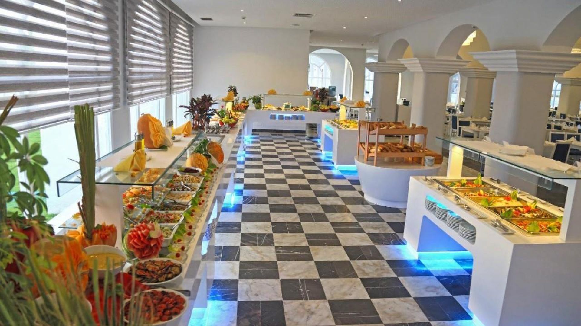 Ultra All Inclusive - закуска, обяд и вечеря на шведска маса, междинни хранения, алкохолни (10:00 – 22:00 часа) и безалкохолни напитки (08:00 – 00:00 часа), вода се предоставя от диспенсери в ресторантите и баровете на хотела, в съответното им работно време. Бутилираната вода е срещу заплащане.