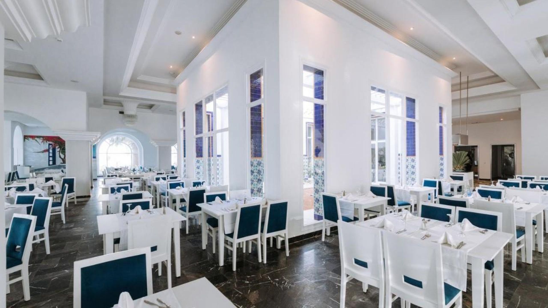 Основен ресторант El Menzel, а ла карт ресторант Il Gusto с тунизийска и средиземноморска кухня (платен, 1 безплатно посещение за престой, след предварителна резервация), а ла карт ресторант La Pergola с италианска кухня (след предврителна резервация), а ла карт ресторант на плажа Le Sporting Beach (след предварителна резервация, от юни до септември), лоби бар Blue, бар басейн Granada (май-октомври), бар на плажа Le Sporting Beach (май-октомври), диско бар Le Mirage (веднъж седмично), мавританско кафене Andalusia (наргиле - срещу заплащане), открит басейн с детска зона, закрит басейн (отопляем през зимата), СПА център, конферентна зала, магазини, банкомат.