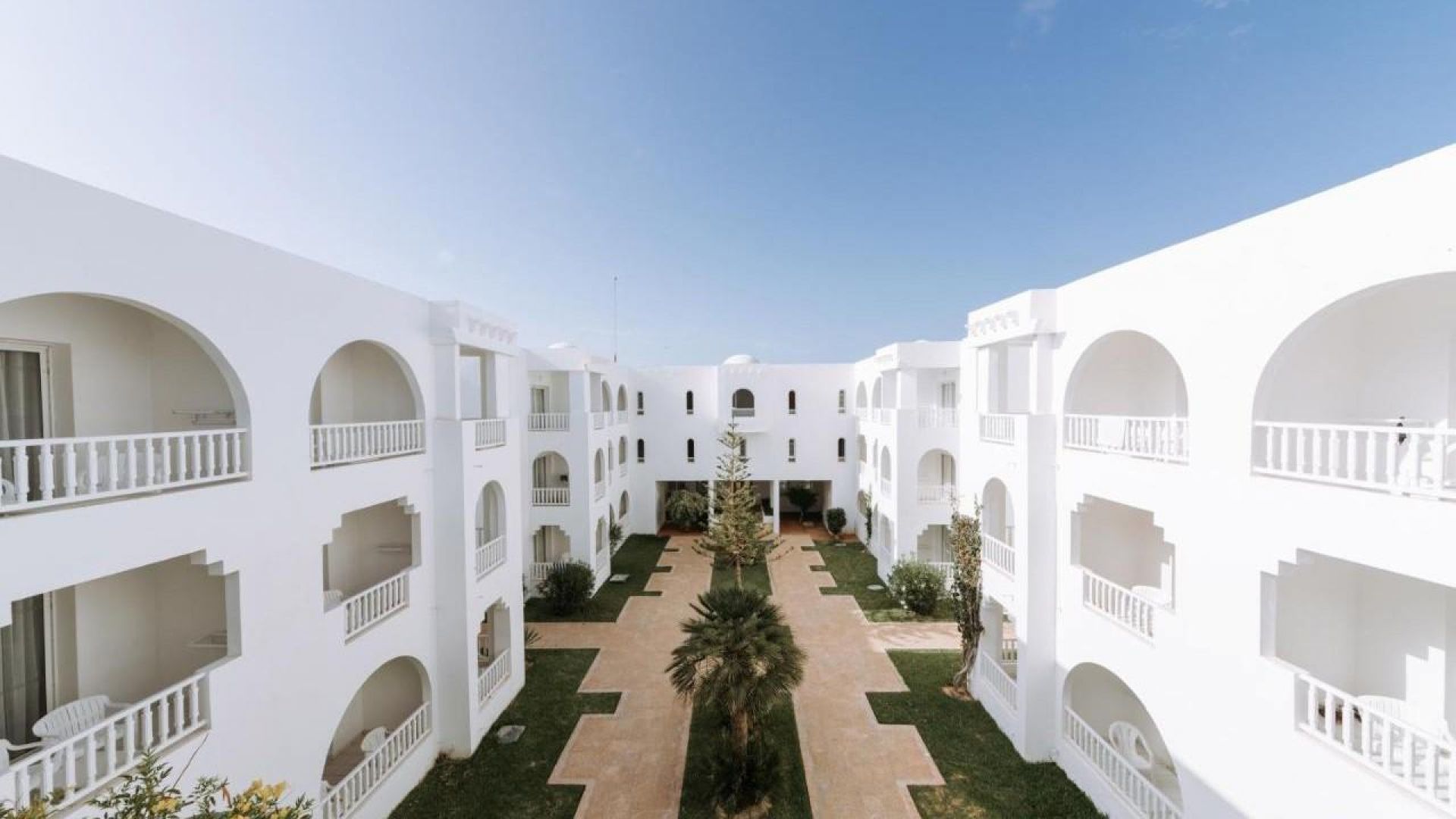 Намира се на 5 км от Мидун, на 18 км от Хумт Сук и на 27 км от летището, на брега на морето, до красивия плаж с бял пясък Сиди Марез. Последната реновация на стаите е от 2019 год.