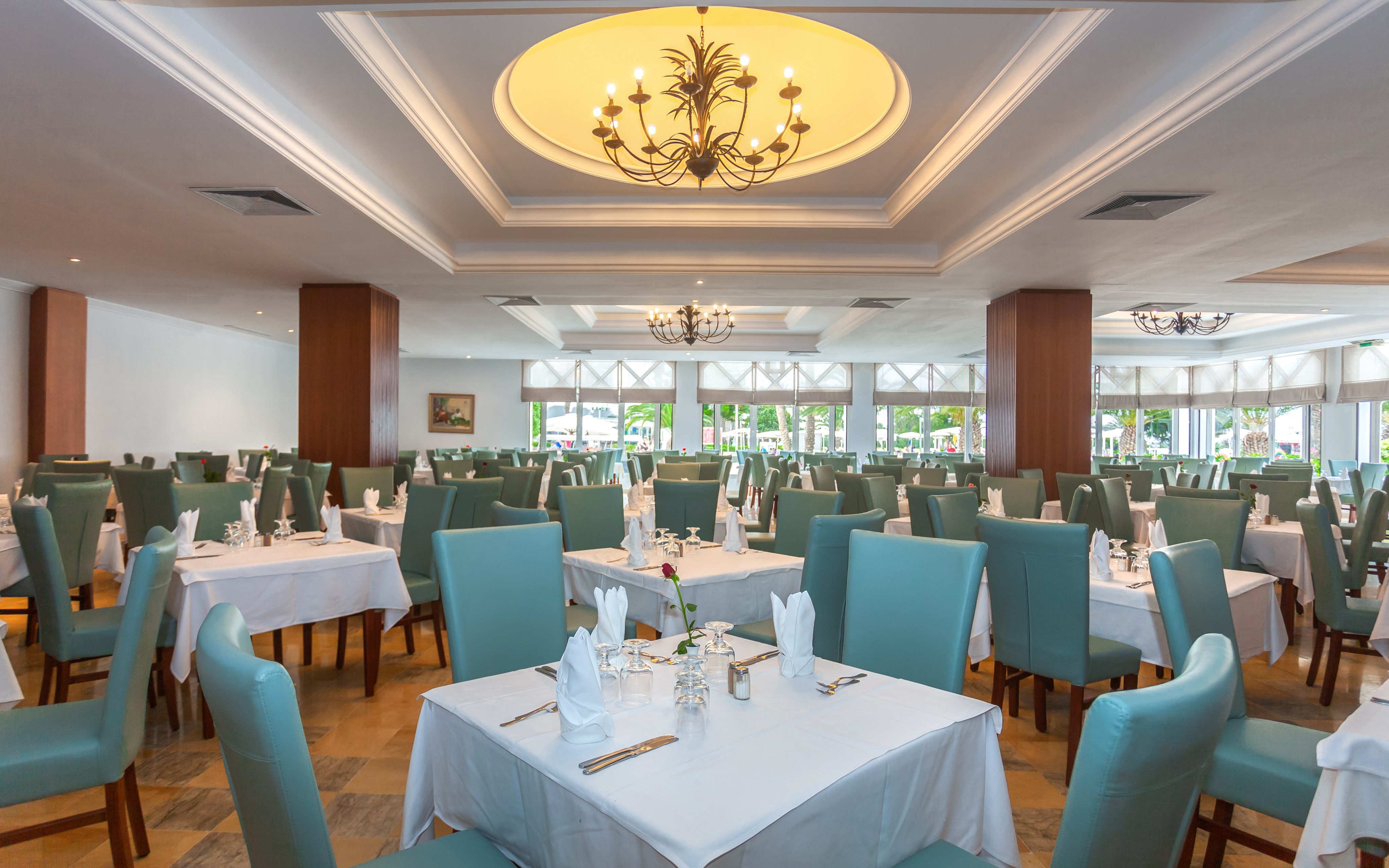 Основен ресторант Mimosa, а ла карт ресторант El Fell (платен, 1 безплатно посещения на престой, след предварителна резервация), барбекю ресторант на плажа, лоби бар Camelia, бар Dahlia (срещу заплащане), бар басейн, бар на плажа, Таласо център, открит басейн, закрит басейн, закрит басейн с морска вода в Таласо центъра (срещу заплащане), анимация, денонощна рецепция, 3 конферентни зали, обмяна на валута, магазин.