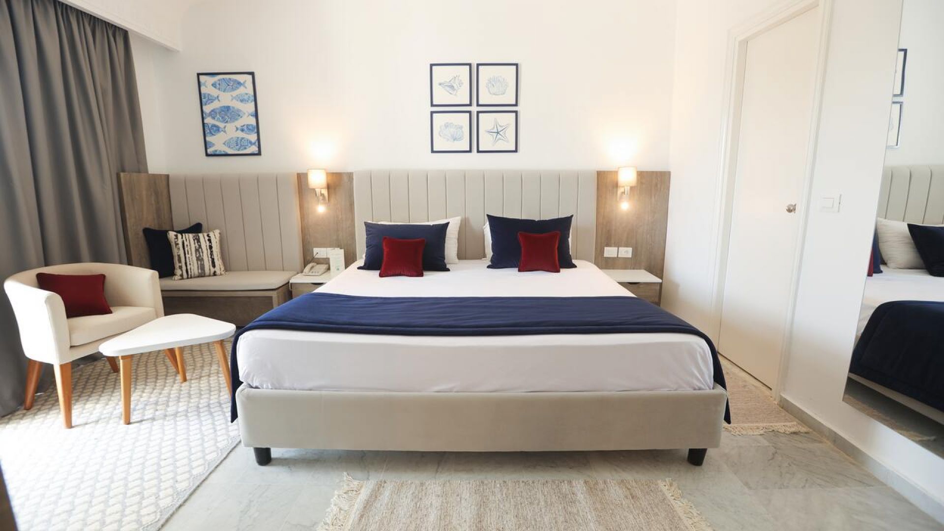 Хотелът разполага с 265 стаи, комфортно обзаведени в съвременен арабско-мавърски стил и разположени в основна хотелска сграда с няколко асансьора: Standard Room (27 кв.м), Sea View Room (27 кв.м), Family Room (46.5 кв.м). Фамилните стаи са с едно спално помещение, с 4 легла или спалня и 2 отделни легла.