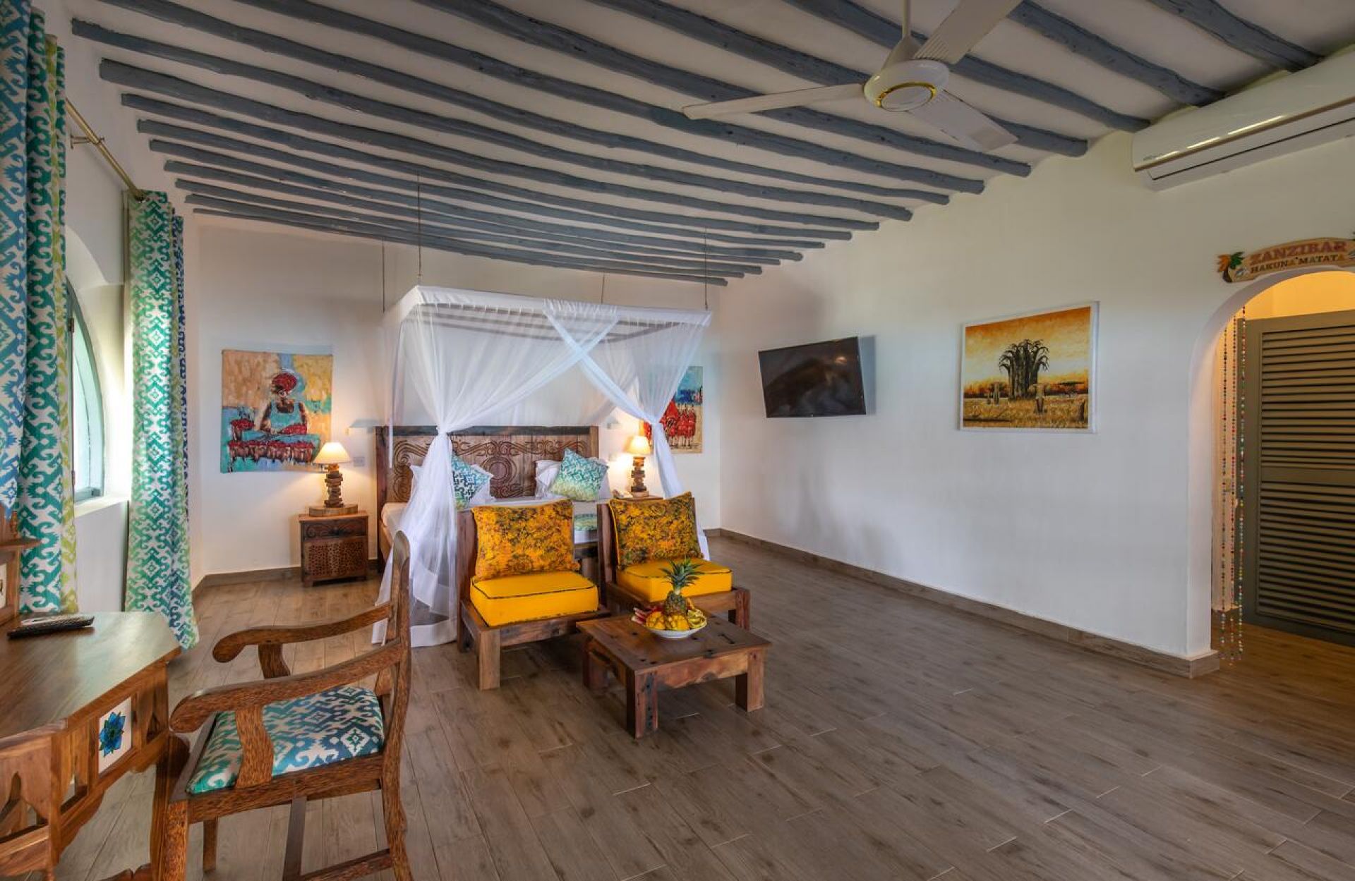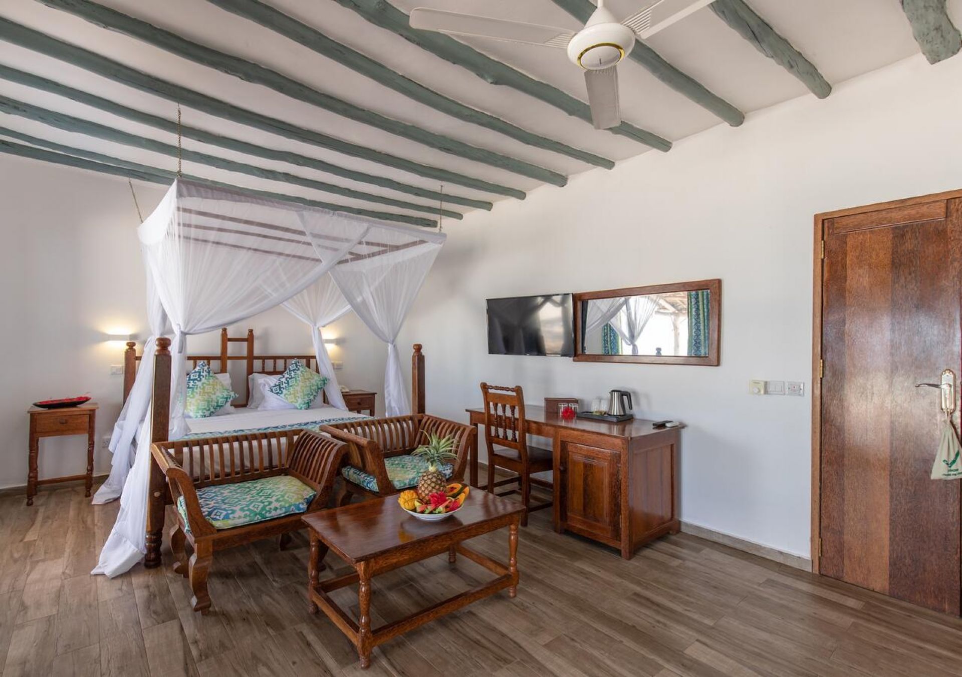Хотелът разполага със 101 стандартни стаи с гледка градина (30-32 кв.м), 21 стаи с частична гледка море (30-32 кв.м), 12 делукс стаи с гледка море (33 кв.м), 19 луксозни суита с гледка море (36-46 кв.м), 1 суит за младоженци с гледка море (92 кв.м). Всички стаи са обзаведени в типичния местен африкански стил и са оборудвани с климатик, телевизор, телефон, баня с душ/вана, сешоар, минибар, сейф, балкон или тераса, (сет за чай/кафе в делукс и суит стаите, джакузи в суит стаите).