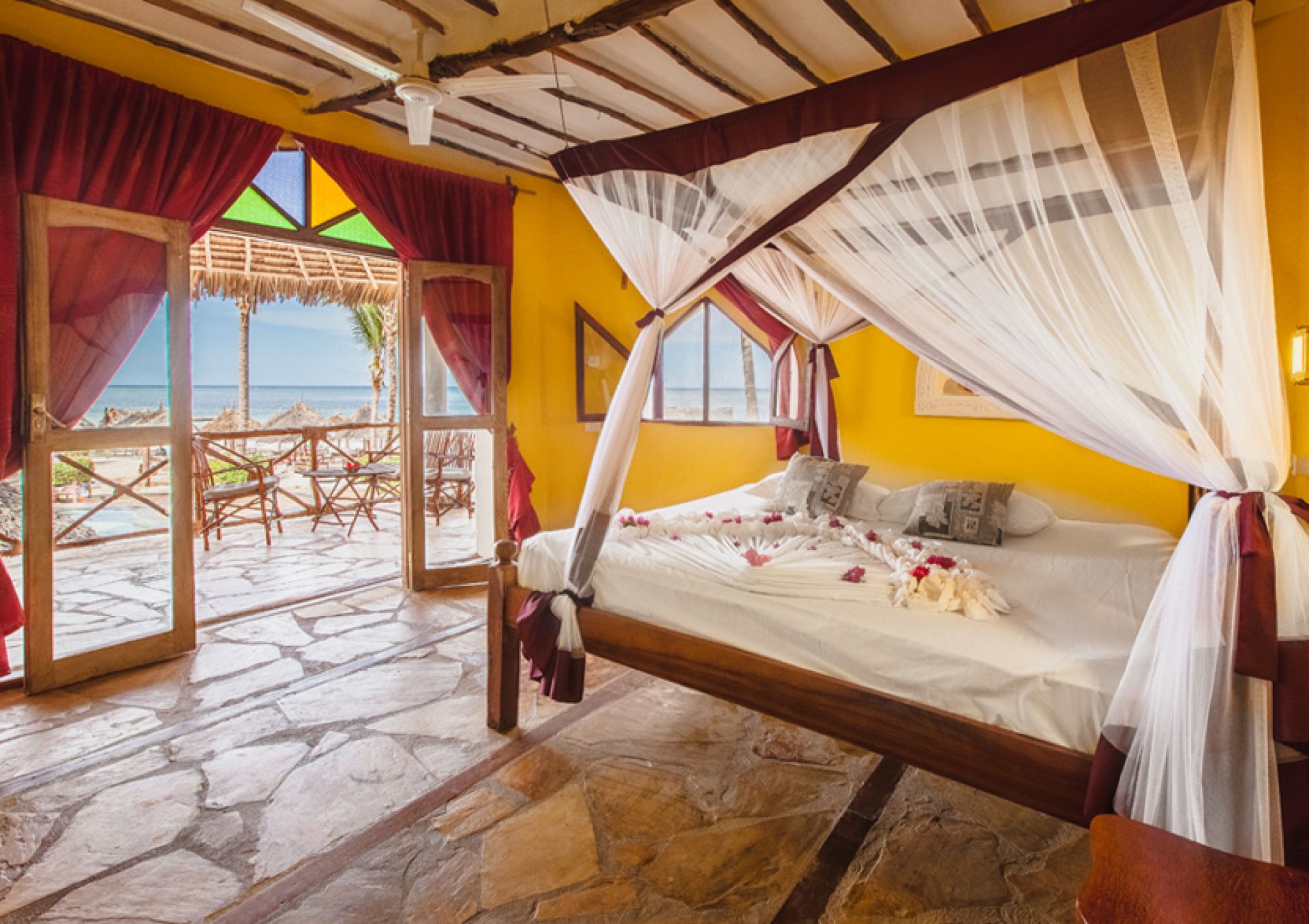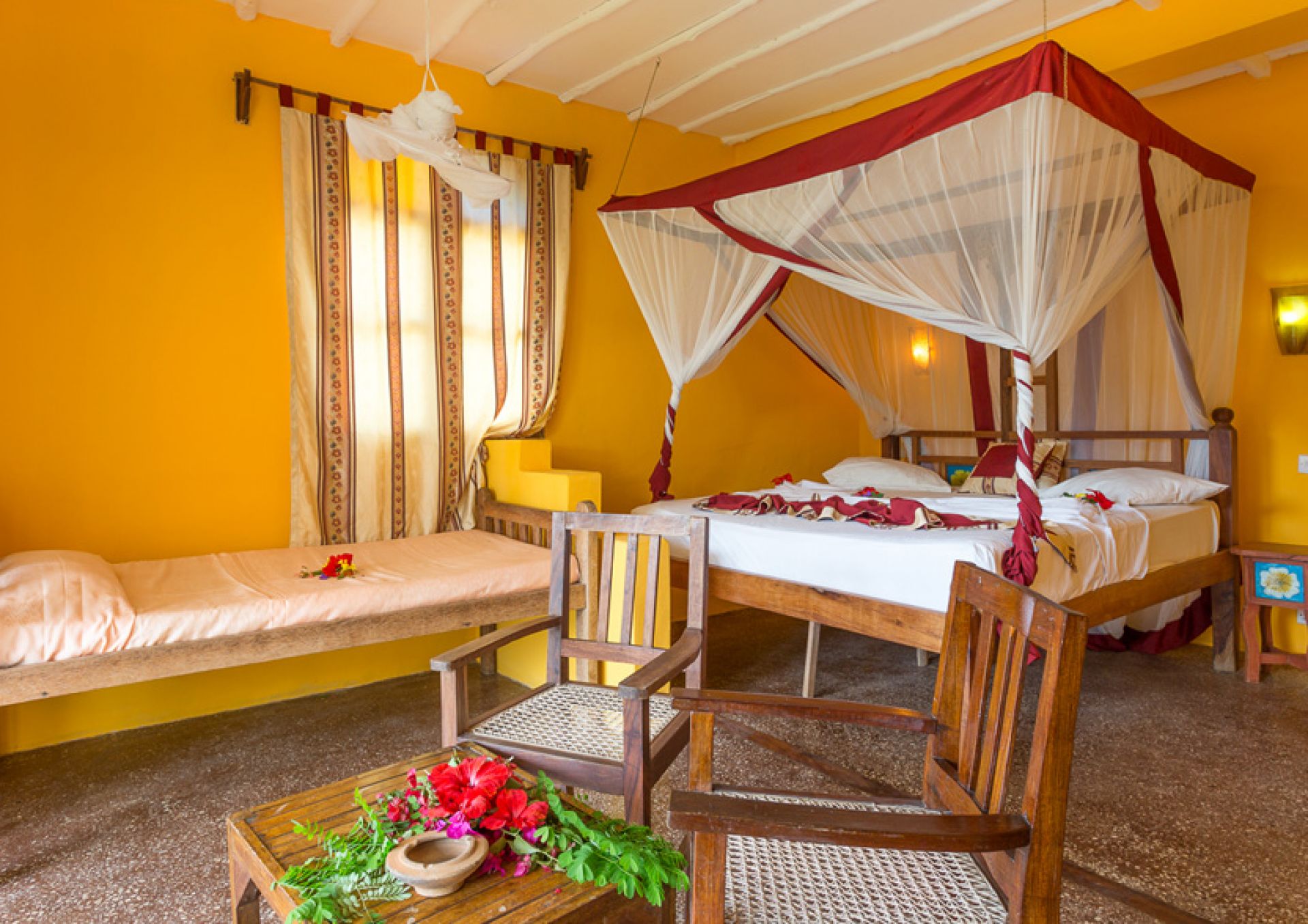 Хотелът разполага с 62 стаи: стая класик (30 кв.м, разположени на първи етаж), Garden/Sea View Bungalow (25 кв.м), фамилна стая (40 кв.м, разположени на втори етаж), Sultan suite (40 кв.м., разположен на приземен етаж), Waridi suite (60 кв.м, разположен на два етажа).