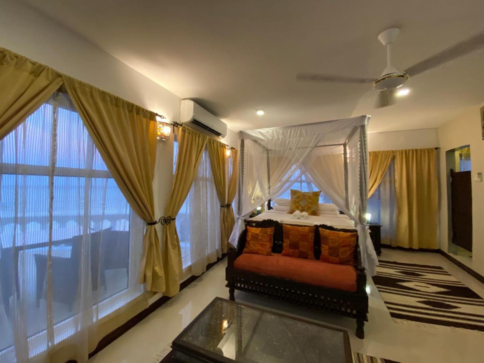 Отговаряте на условията за Genius отстъпка в Jafferji Beach Retreat,! За да получите спестявания в това място за настаняване, всичко, което трябва да направите, е да влезете в профила си. Jafferji Beach Retreat се намира в Матемве, на 2,2 км от плажа Матемве. Предлага изглед към морето. Мястото за настаняване разполага с ресторант, бар и закрит басейн. Осигурени са денонощна рецепция, румсървис и организиране на туристически обиколки. Във всички помещения за настаняване има климатик, телевизор с плосък екран със сателитна телевизия, хладилник, електрическа кана, душ, сешоар и бюро. Всички стаи в хотела разполагат с гардероб и самостоятелна баня. Всеки ден в Jafferji Beach Retreat се сервира континентална закуска. На разположение на гостите има тераса за слънчеви бани. Остров Mnemba е на 5 км от Jafferji Beach Retreat, а плажът Muyuni – на 7 км. Най-близкото летище е международно летище „Абейд Амани Каруме“, разположено на 43 км. От мястото за настаняване се организира летищен трансфер срещу заплащане.