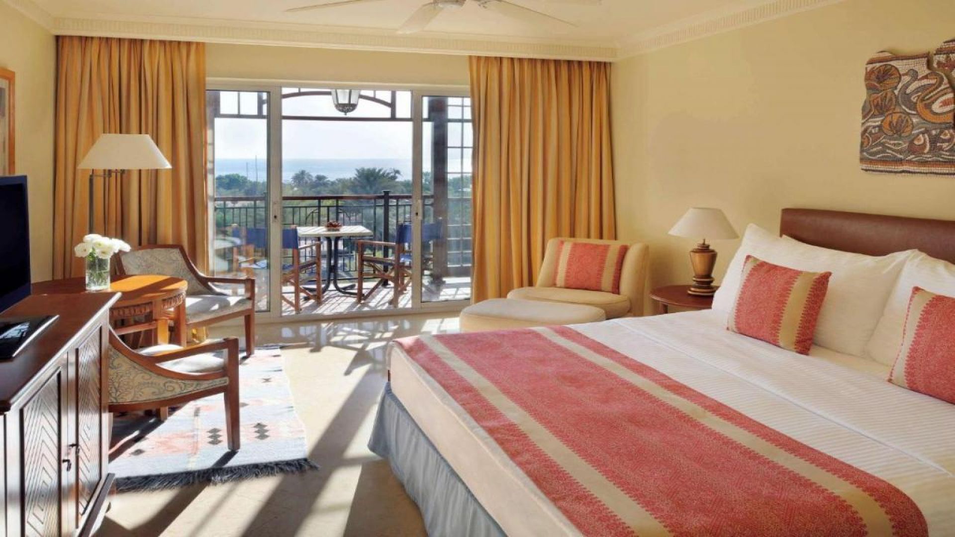 - Няколко ресторанта и бара: Palm Court Restaurant & Terrace; Al Shatt Restaurant & Terrace; Bakery Shop & Café; Red Sea Grill; Al Nafoura Lobby Bar; Al Sufra Mediterranean Restaurant & Terrace. movenpick.accor.com+1