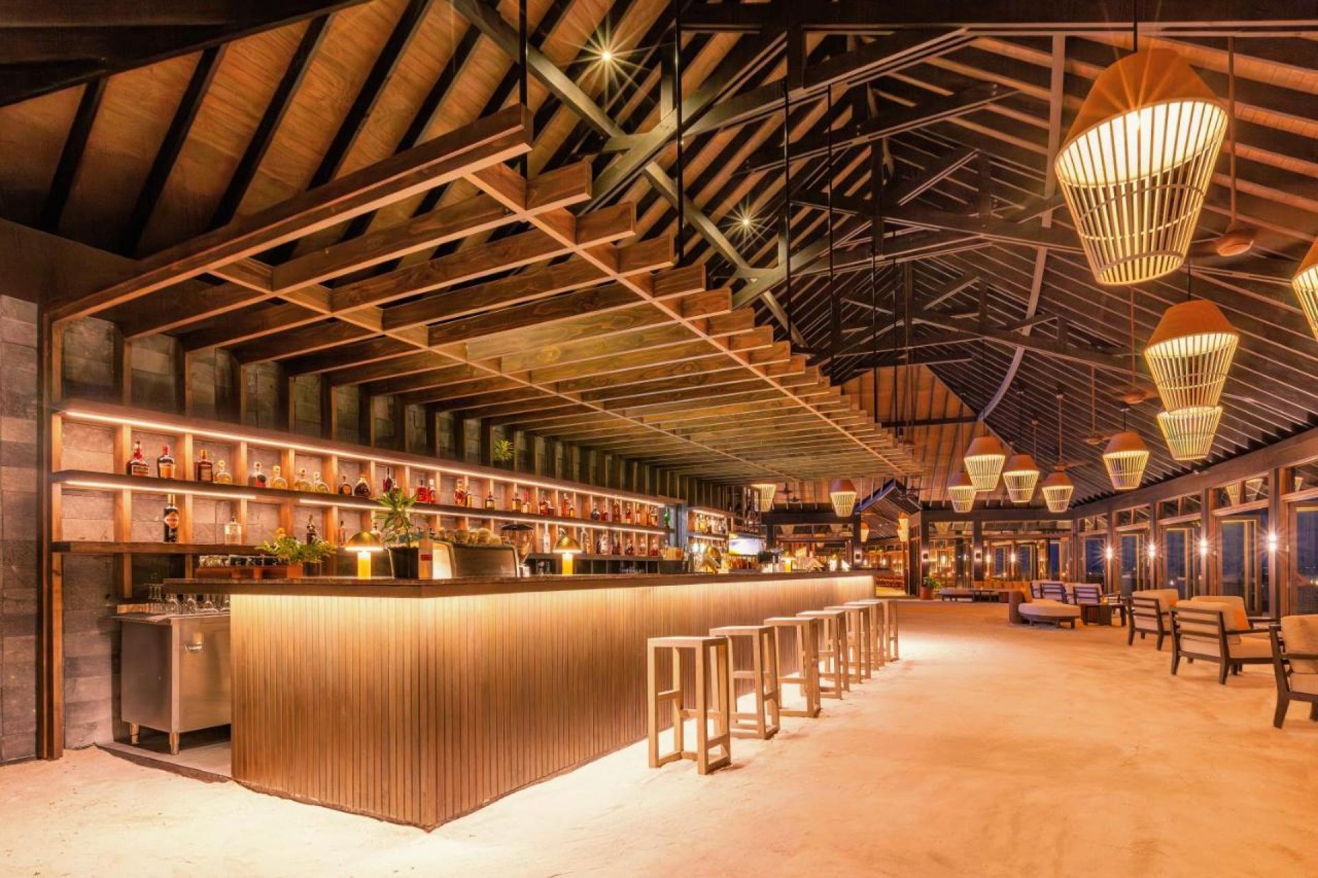 Бар Umi – открива се спираща дъха панорамна гледка към рифа и лагуната.