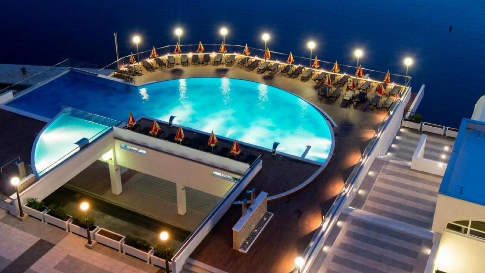 Бар с панорамна гледка към морето, перфектен за релаксация и наслаждаване на коктейли в приятна атмосфера.