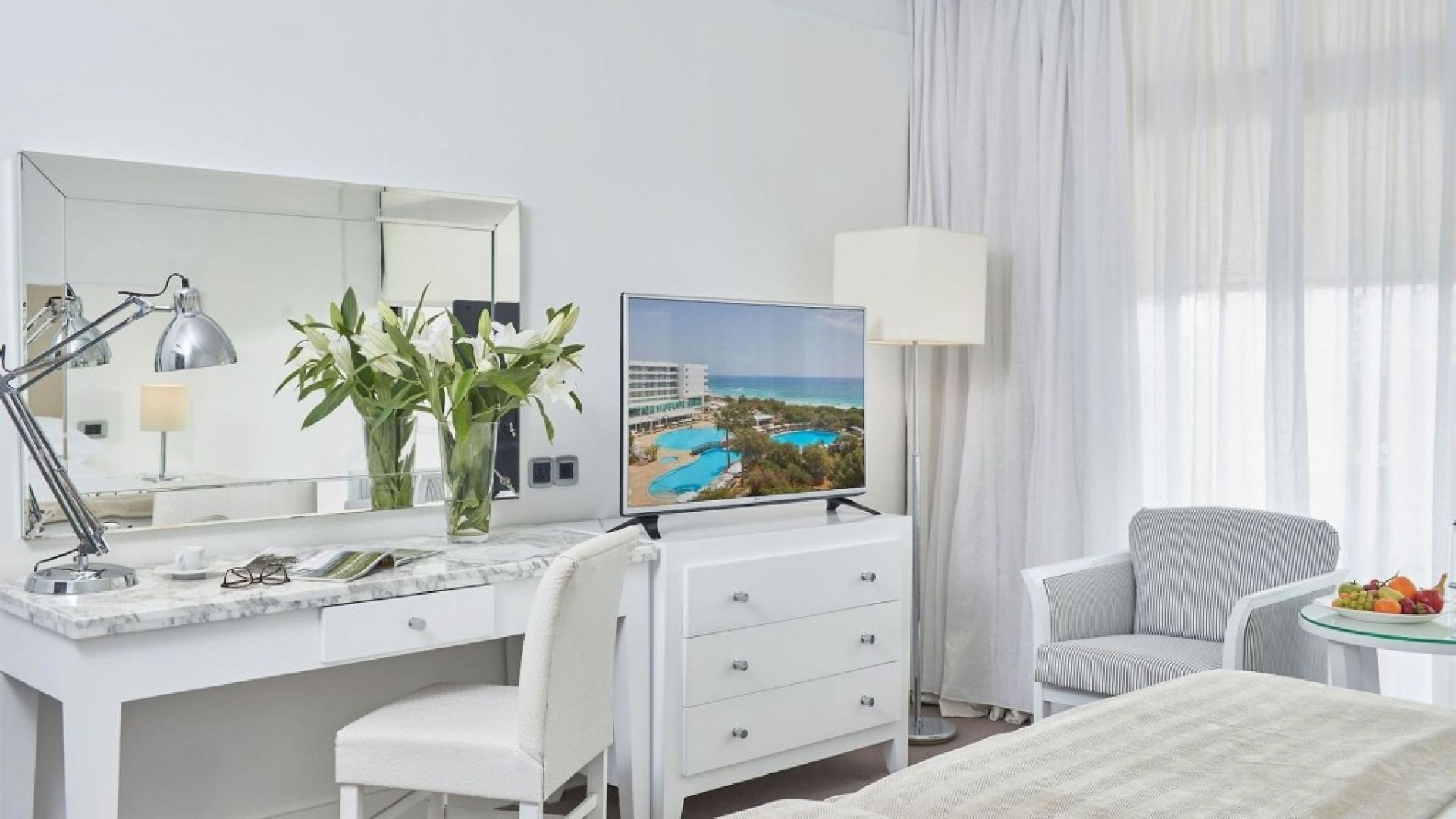 Хотелът е разположен на най-красивия пясъчен плаж в Кипър със спираща дъха гледка към кристално чистите води на Средиземно море. Ресторантът на хотела предлага международна и местна кухня. Гостите могат да се насладят на освежаващи алкохолни и безалкохолни напитки в бара. Хотелът предлага на гостите разнообразие от спортни дейности и развлечения, включително билярд, водна топка, както и тенис корт, тенис на маса и фитнес зала. Хотелът разполага с открит плувен басейн и СПА център, където гостите могат да се насладят на масажи и козметични процедури.